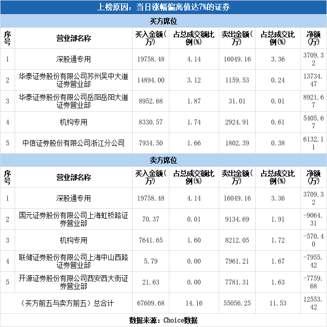 多主力现身龙虎榜,西部材料涨停(12-19)