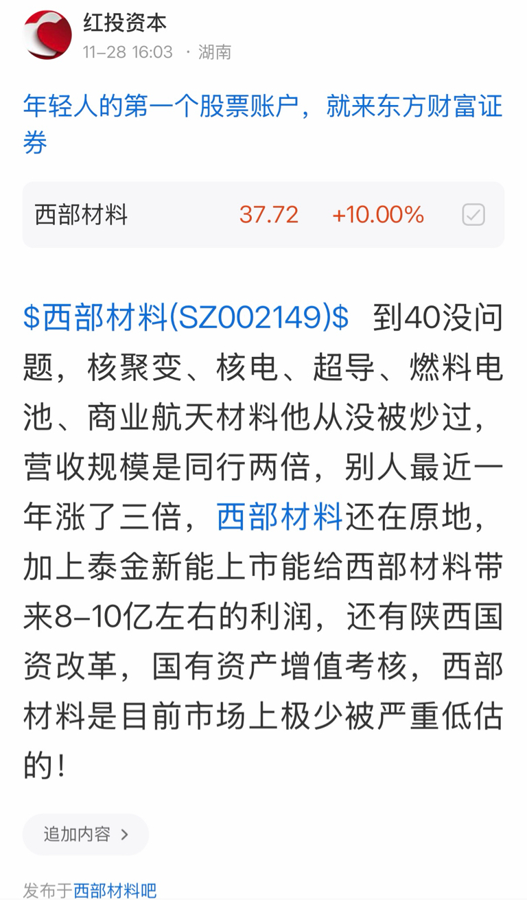 温馨提示: 1.根据《证券法》规定,禁止编造、传播虚假信息或者误导性信息,扰乱证券市场;2.用户在本社区发表的所有资料、言论等仅代表个人观点,与本网站立场无关,不对您构成任何投资建议。用户应基于自己的独立判断,自行决定证券投资并承担相应风险。《东方财富社区管理规定》