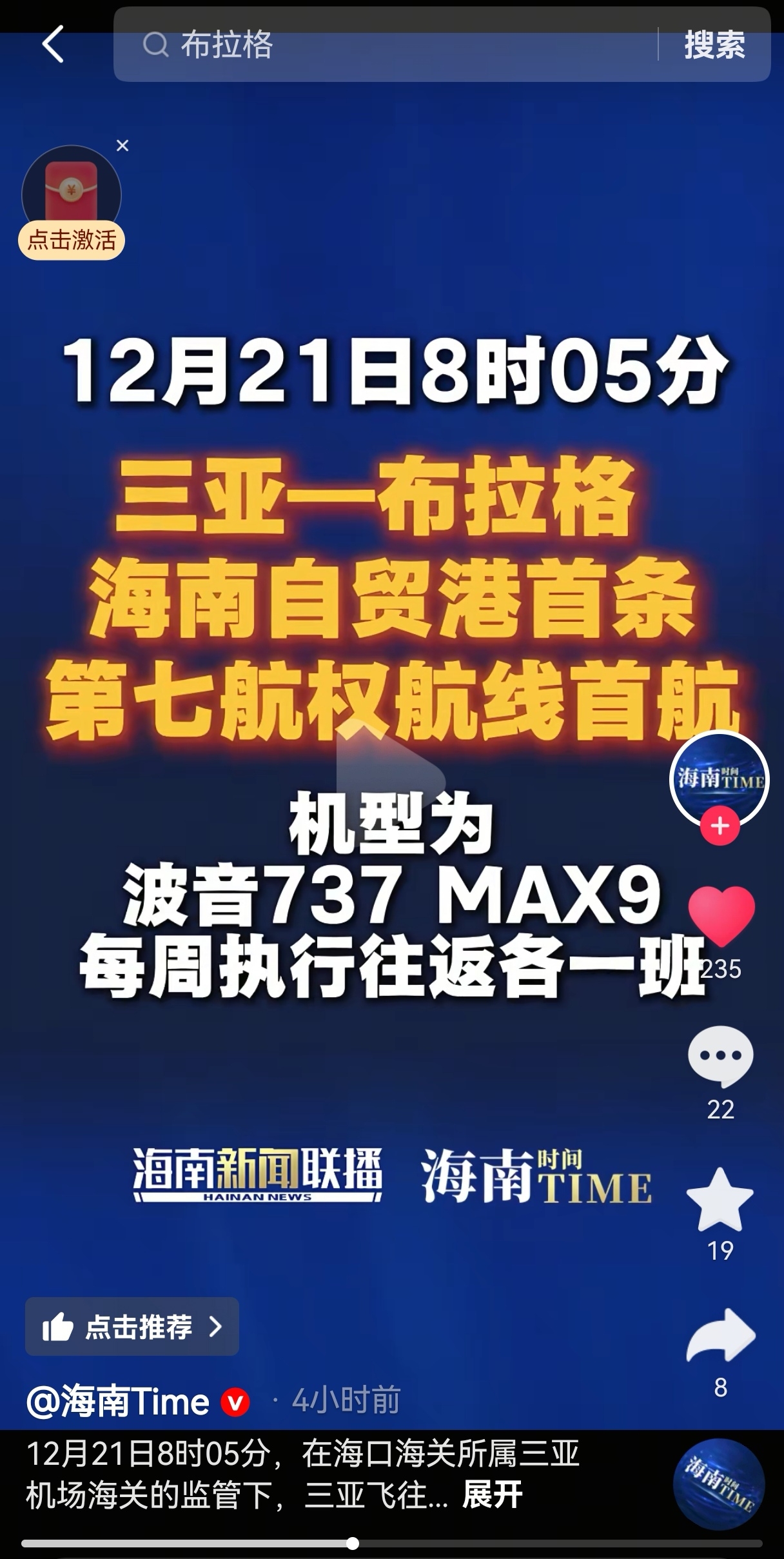 $西部材料(SZ002149)$ $海南机场(SH600515)$ 第七航权今日首航,国际直通