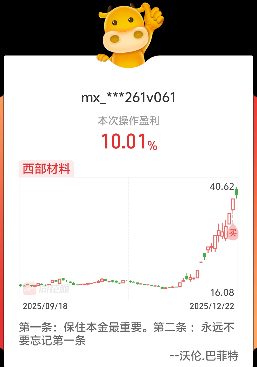 $西部材料(SZ002149)$ 跑的及时啊今天走分歧!
