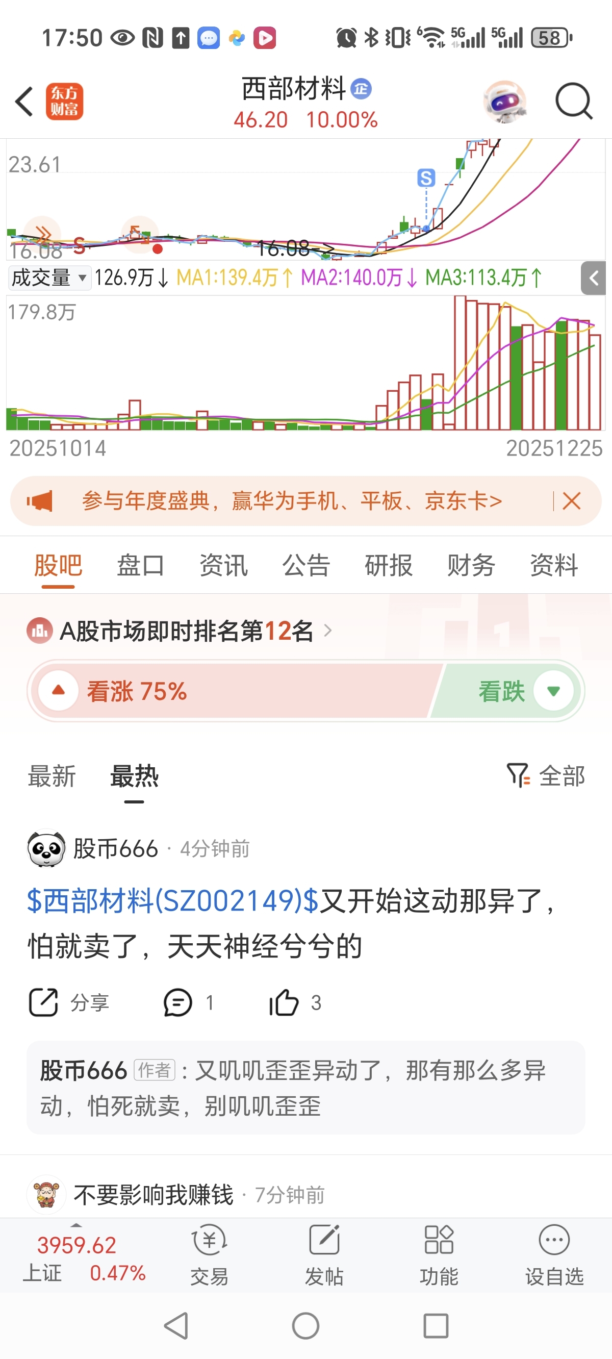 温馨提示: 1.根据《证券法》规定,禁止编造、传播虚假信息或者误导性信息,扰乱证券市场;2.用户在本社区发表的所有资料、言论等仅代表个人观点,与本网站立场无关,不对您构成任何投资建议。用户应基于自己的独立判断,自行决定证券投资并承担相应风险。《东方财富社区管理规定》