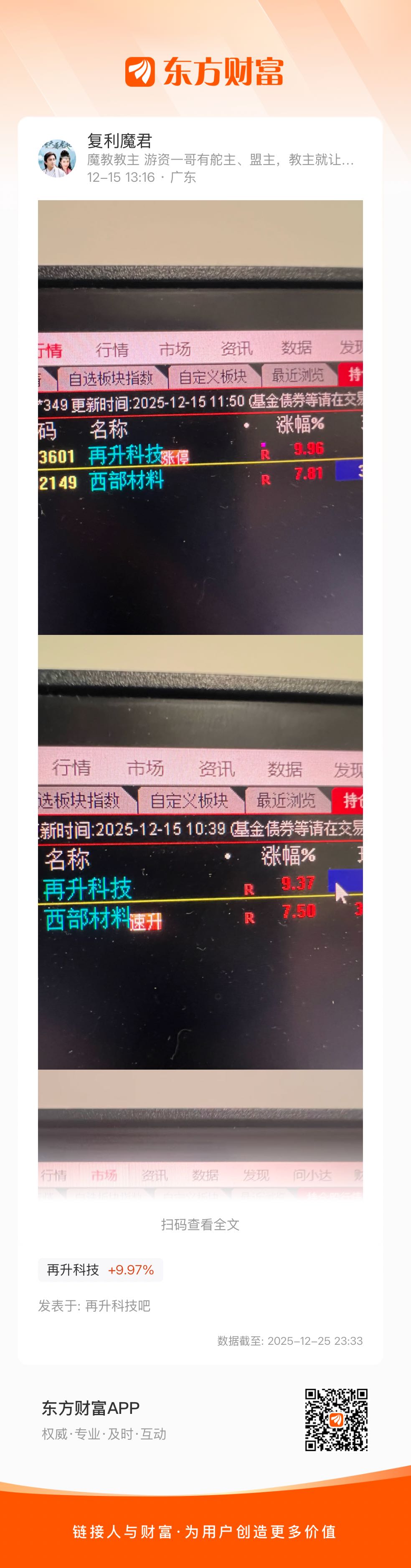 #强势机会# #实盘记录# #炒股日记# $再升科技(SH603601)$ $西部材料(SZ002149)$