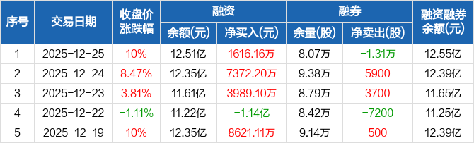 西部材料:融资余额12.51亿元,创历史新高(12-25)