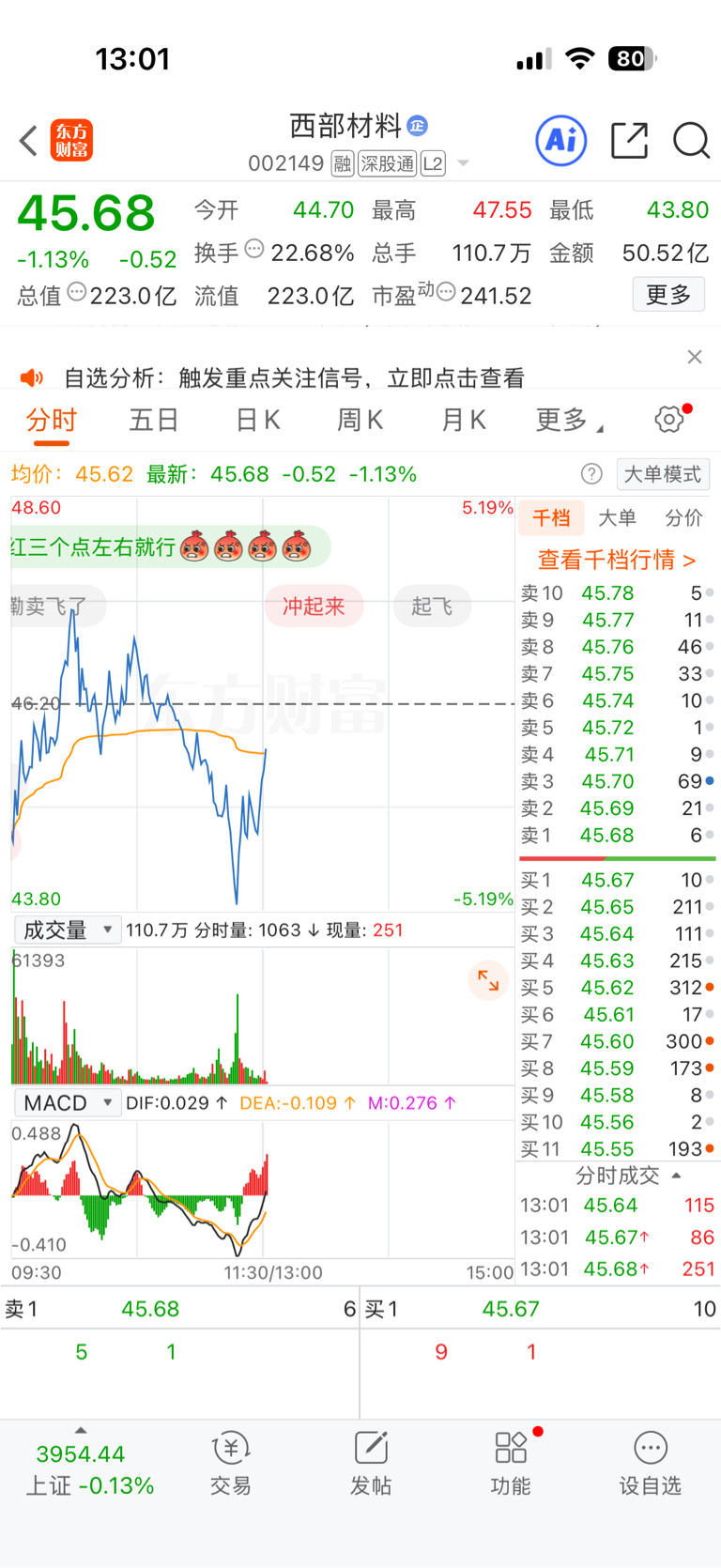 $西部材料(SZ002149)$ 西部材料,今日见顶,立贴为证