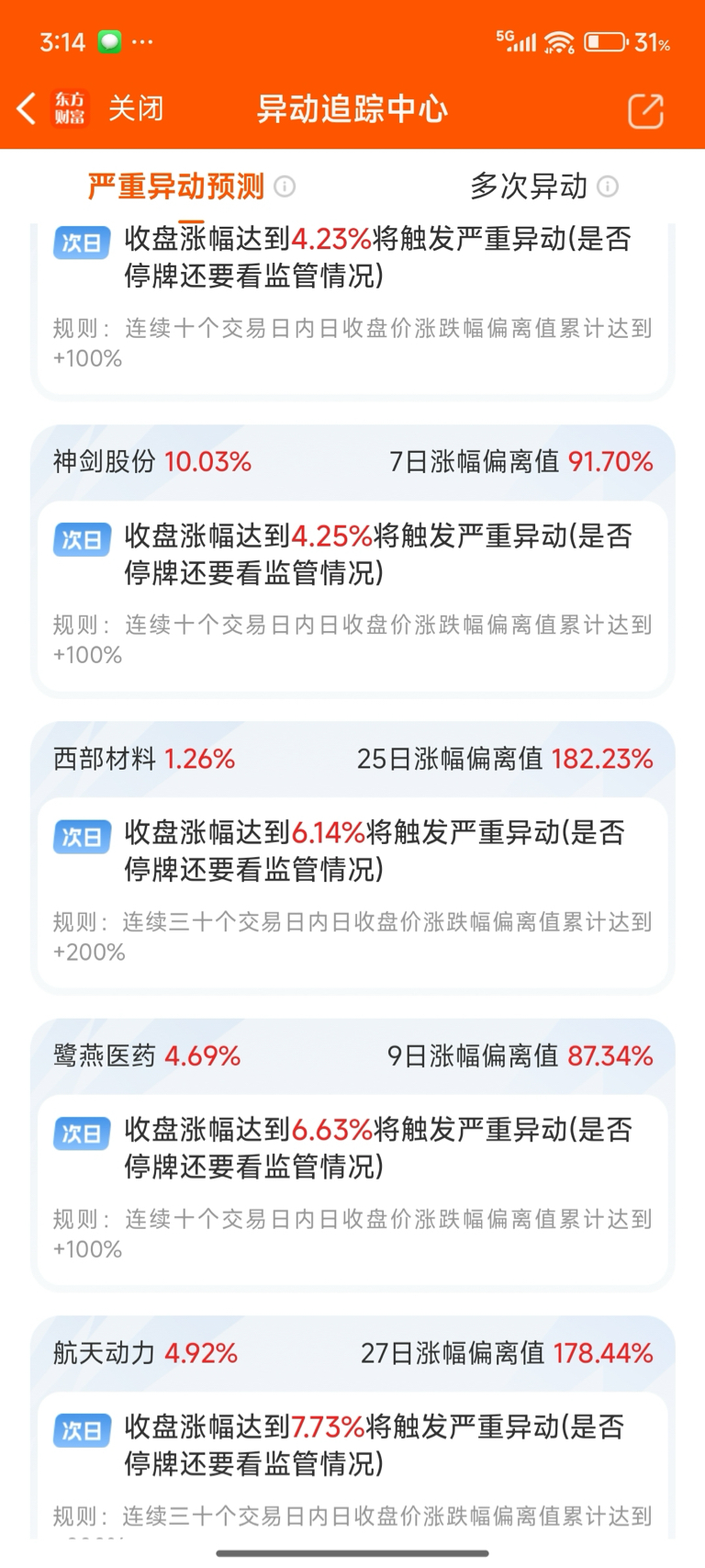 $西部材料(SZ002149)$ 大佬们,为什么还有6个点多就触发了,6个点多才到190%啊,还没200%,不应该还有16个点左右才到200%吗,不明白