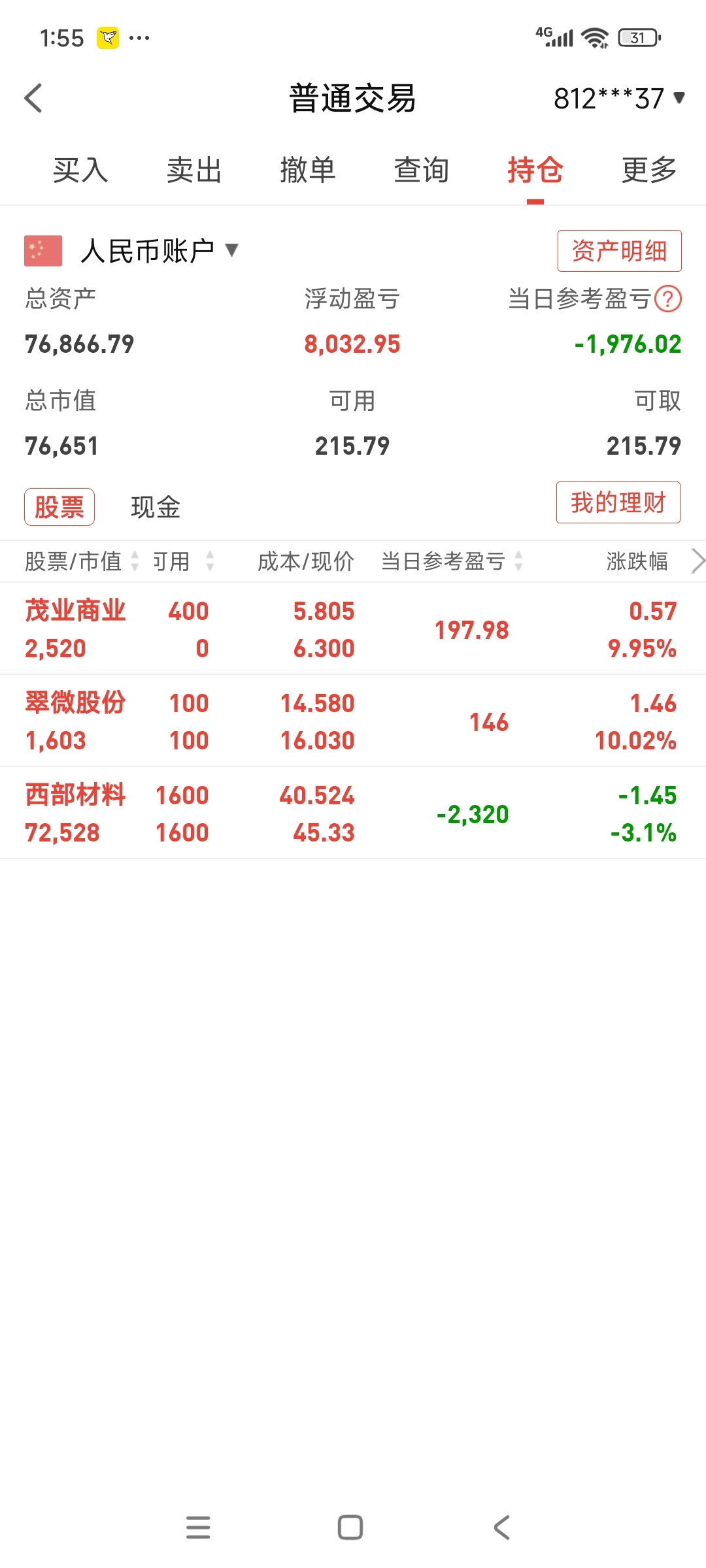 $西部材料(SZ002149)$ 祖宗诶!跌两个点以内好不好?为了你我错失了大好行情