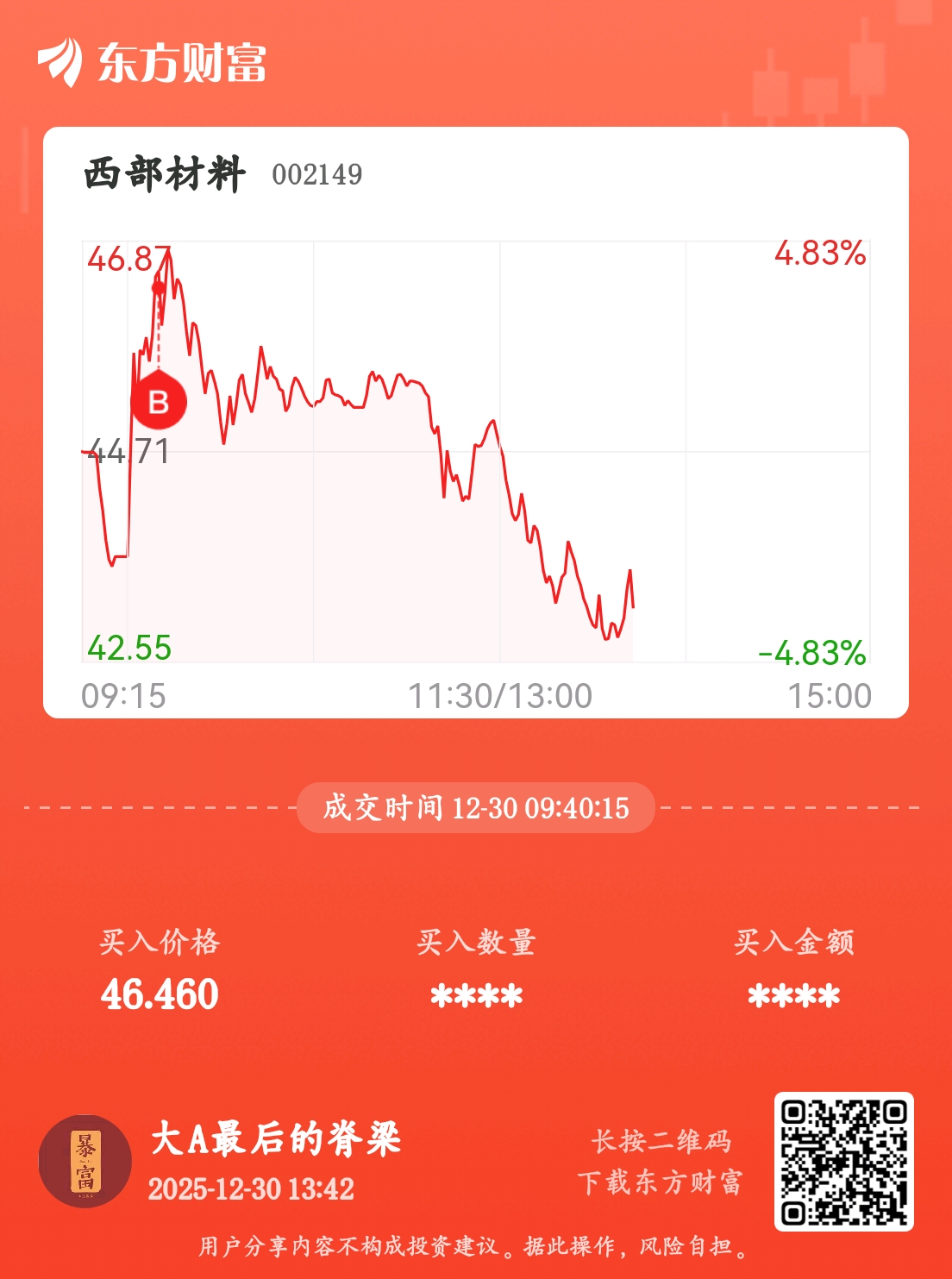 $西部材料(SZ002149)$ 对不住兄弟们,看了一个月,今天终于下手了