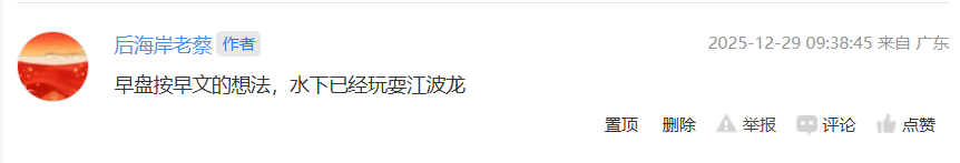 今天得走强了,不能早墨迹了,但是早盘啊,还得忍受他惯性往下走一段了,就看上午十点之前能否止跌企稳了,最好是上午十点之前,就能完成走强的状态,最好是今天能上板,那节后就该他的表演了,要是她今天的走势,没有按照上面的剧本来演绎,今天只能是忍痛离开了。