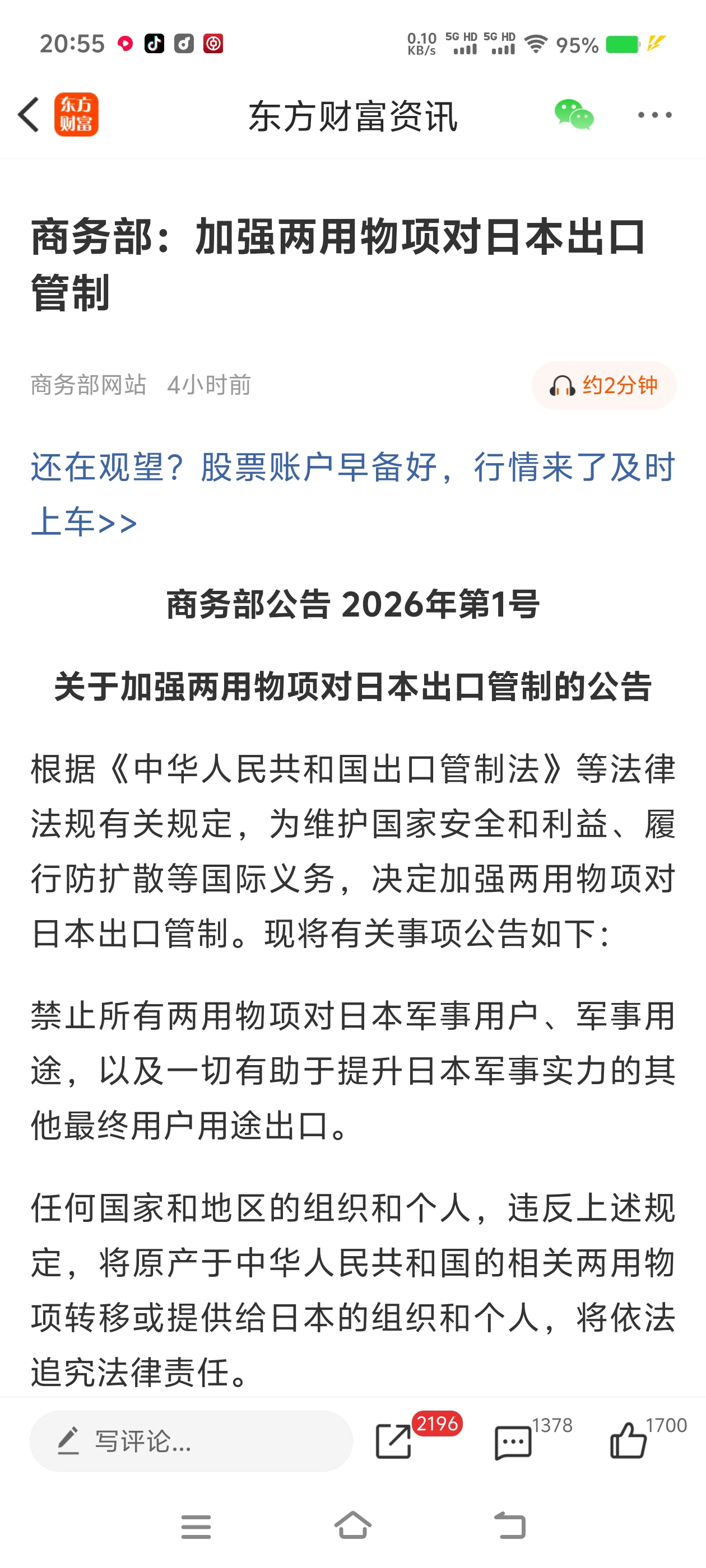 $西部材料(SZ002149)$ 减持这点无所谓,而且商务部的两用物项对日本出口管制又利好西部材料,明天继续高歌猛进