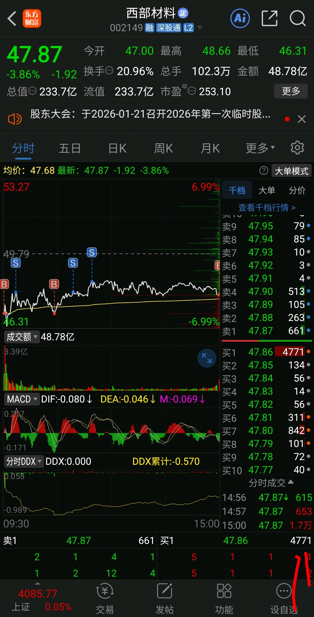 $西部材料(SZ002149)$ 敢跌就敢买,明天还跌不跌?