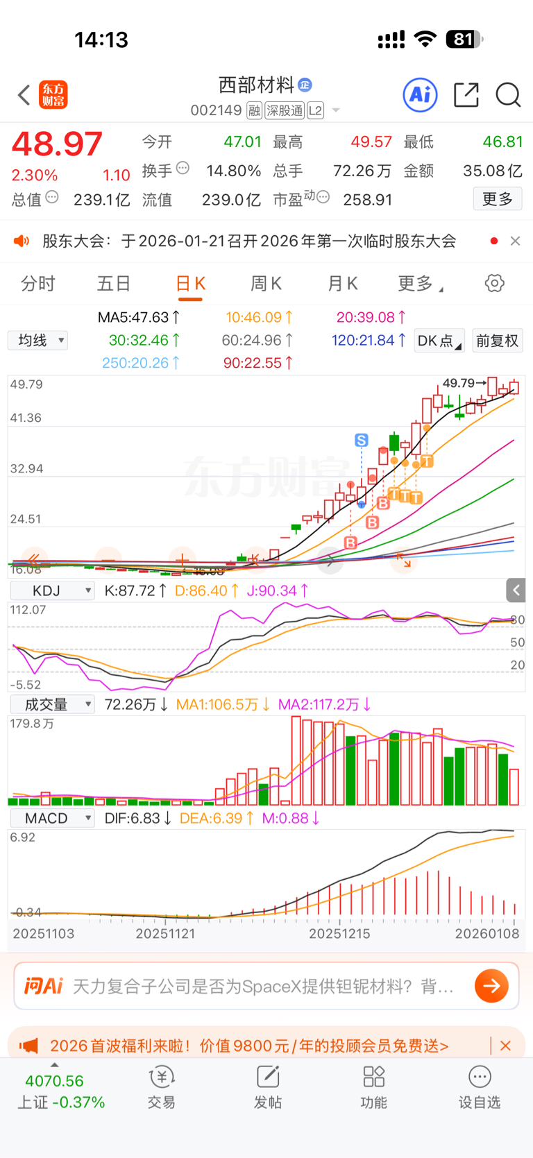 $西部材料(SZ002149)$ 你去看看商业航空里面有哪几个敢突破30天200%的异动的,老老实实待多几天吧!左手华菱右手西部!