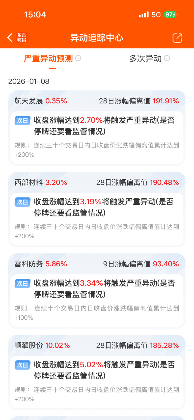 $西部材料(SZ002149)$ 是不是还要控一个星期的异动?