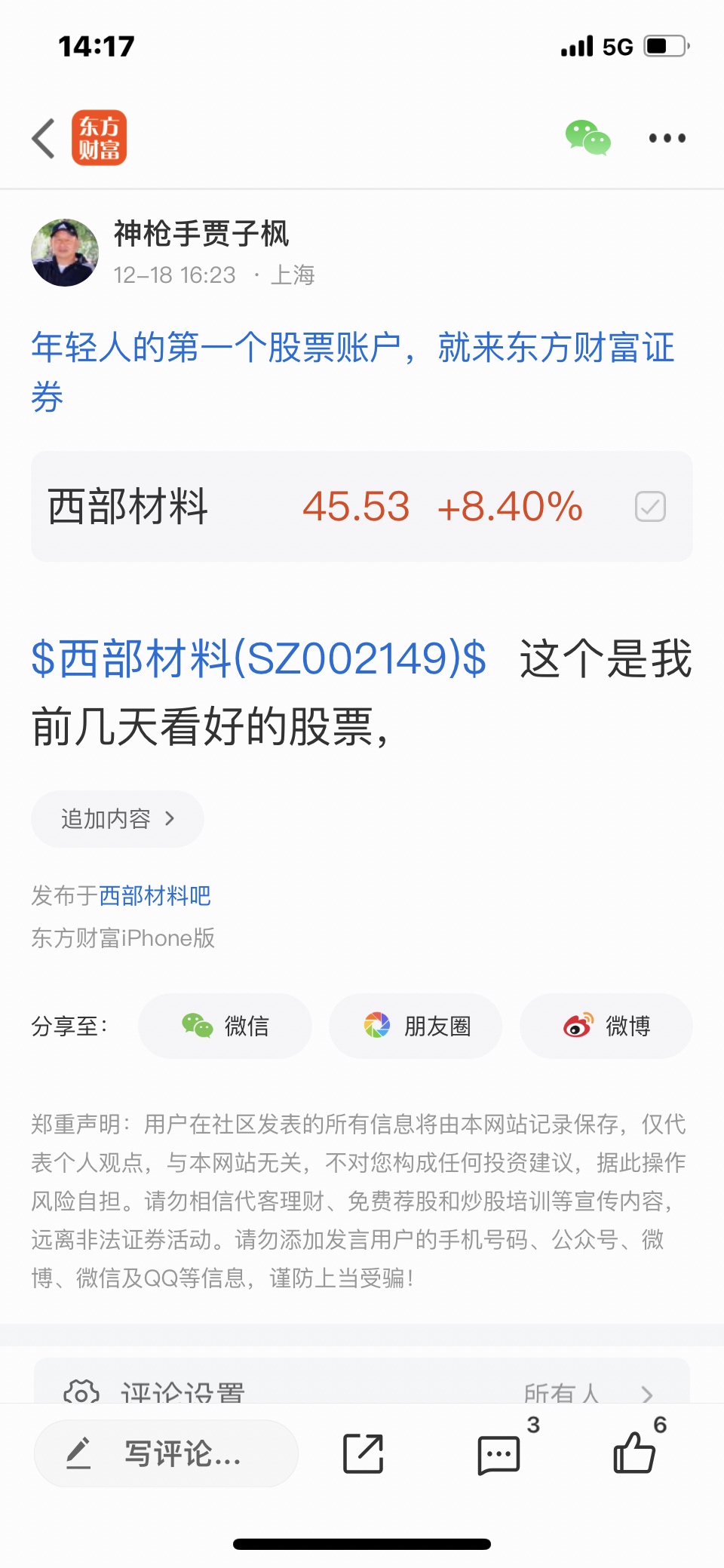 $西部材料(SZ002149)$ 这个是我十二月十三号发表文章看好的股票,