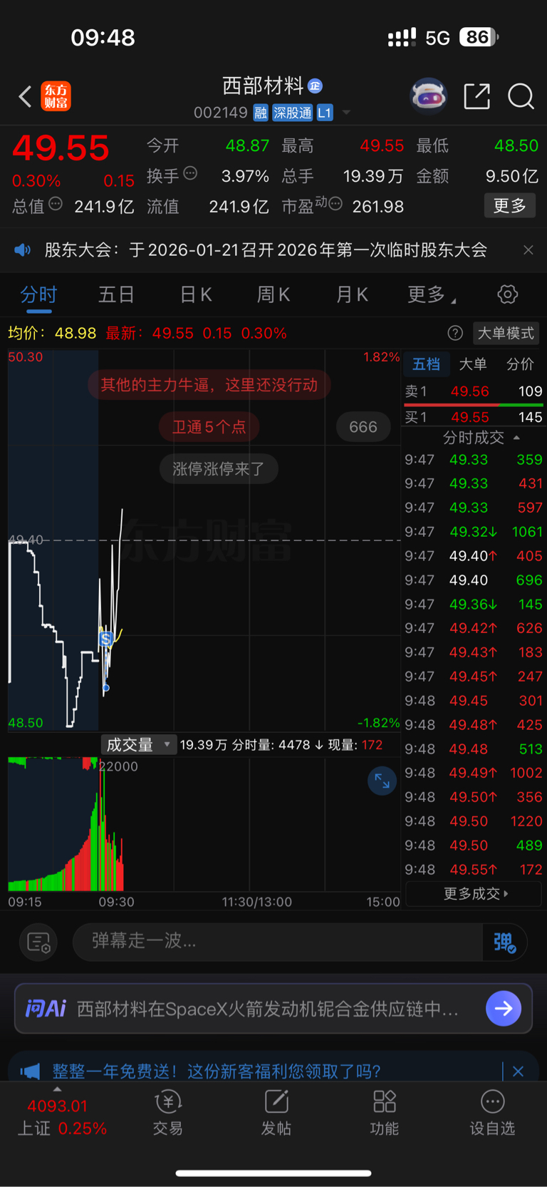 $西部材料(SZ002149)$ 哎,怎么把你卖了去买了消费?