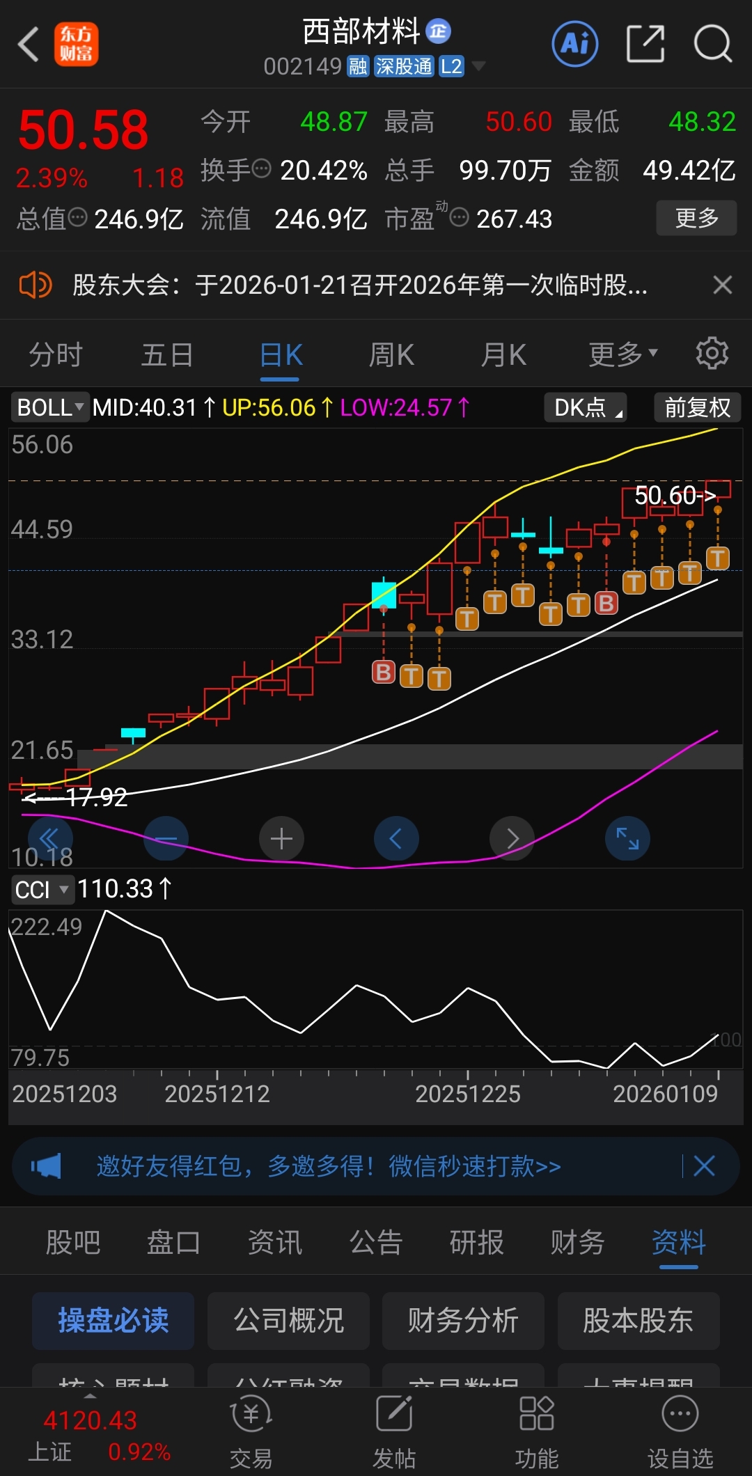 $西部材料(SZ002149)$ 做T了11次,只失败1次,西部是非常好做T的标的。