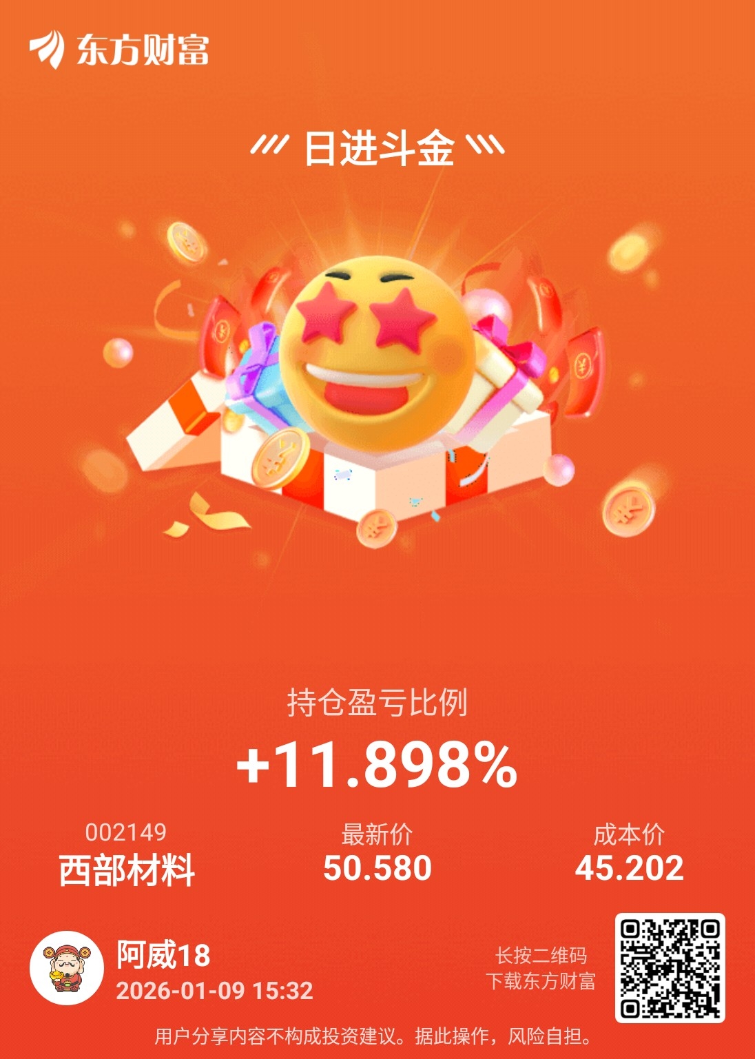 温馨提示: 1.根据《证券法》规定,禁止编造、传播虚假信息或者误导性信息,扰乱证券市场;2.用户在本社区发表的所有资料、言论等仅代表个人观点,与本网站立场无关,不对您构成任何投资建议。用户应基于自己的独立判断,自行决定证券投资并承担相应风险。《东方财富社区管理规定》
