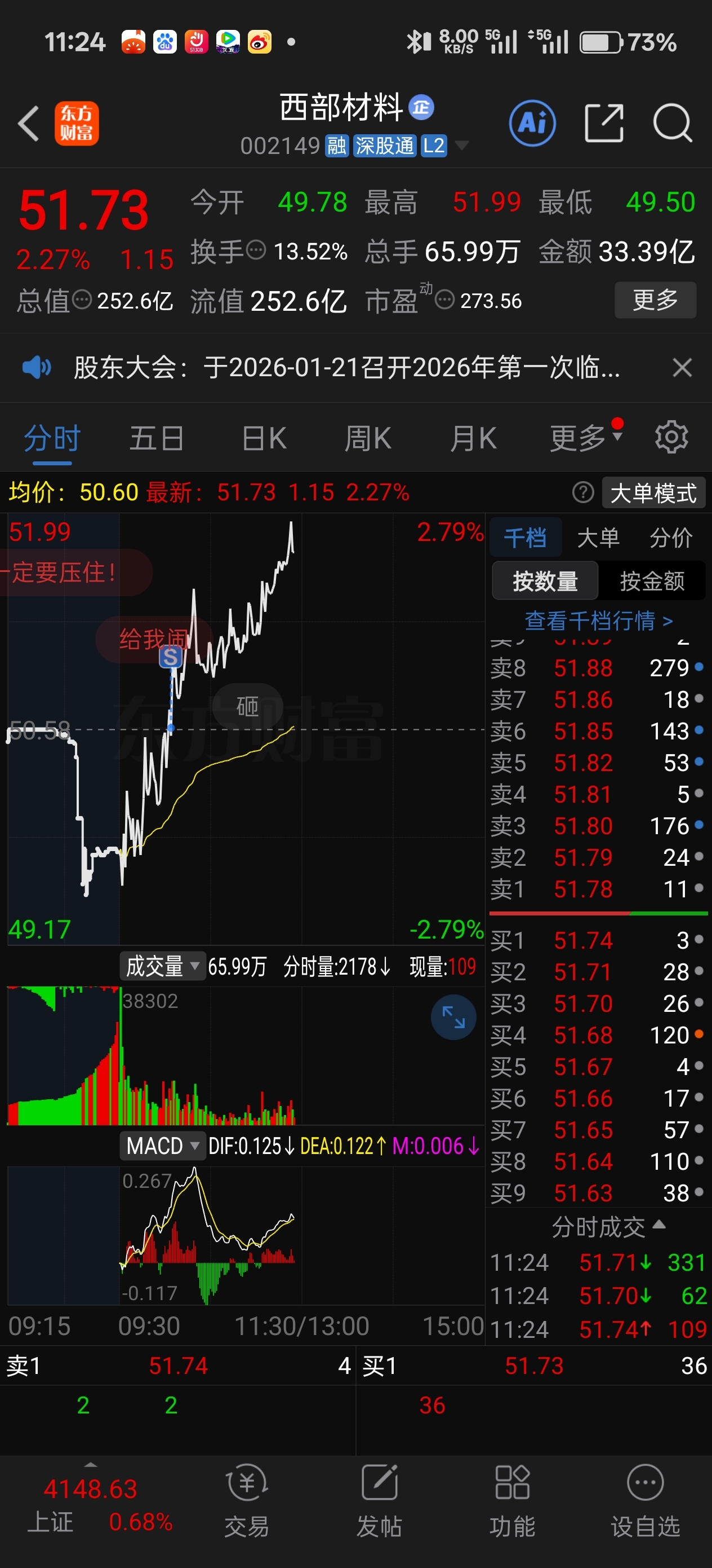 $西部材料(SZ002149)$ 什么时候异动结束啊?今天只有一个多点的涨幅