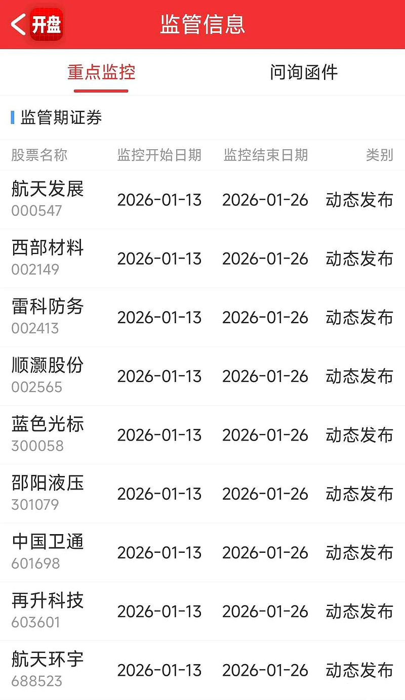 航天发展,西部材料,雷科防务,顺灏股份,蓝色光标,邵阳液压,中国卫通,再升科技,航天环宇。