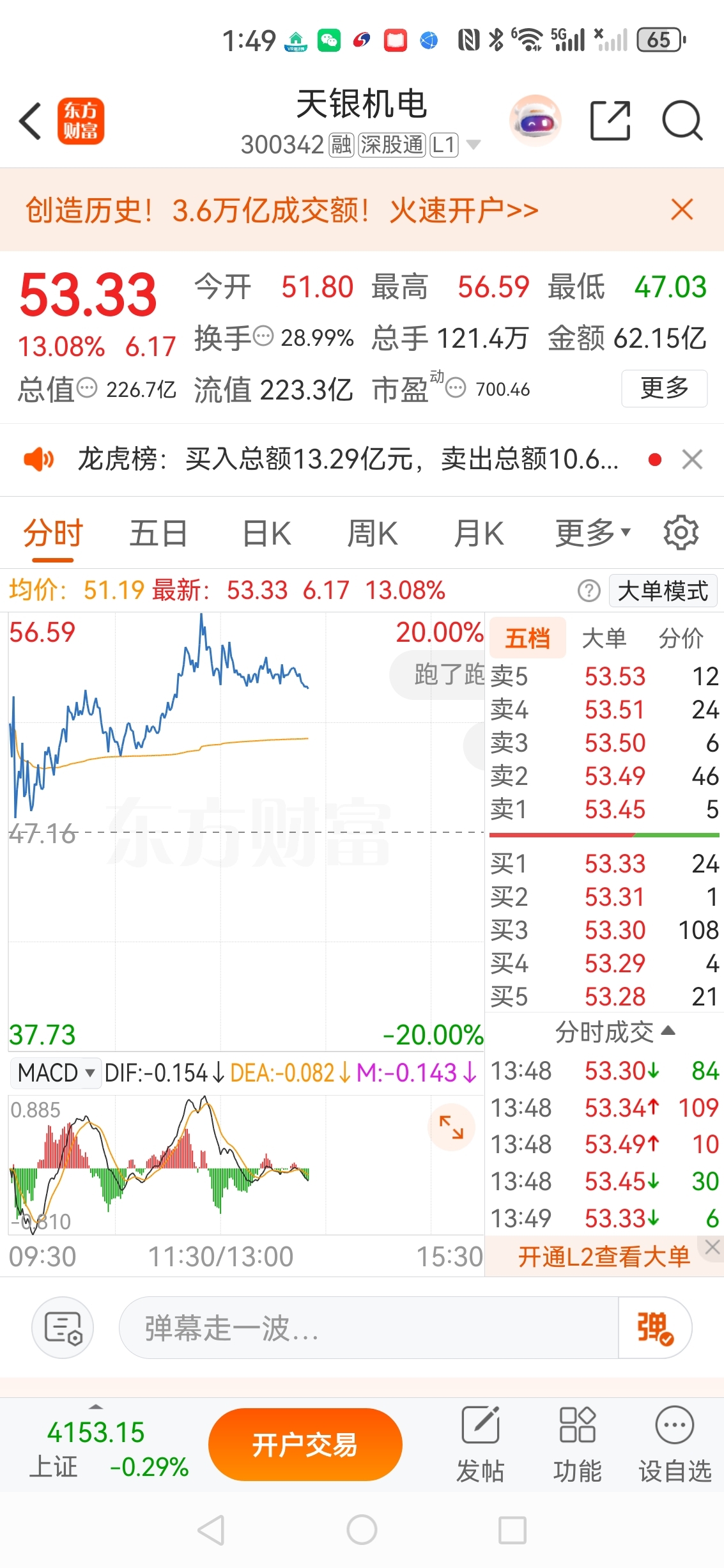 $西部材料(SZ002149)$ 同样商业航天,天银机电涨13个点