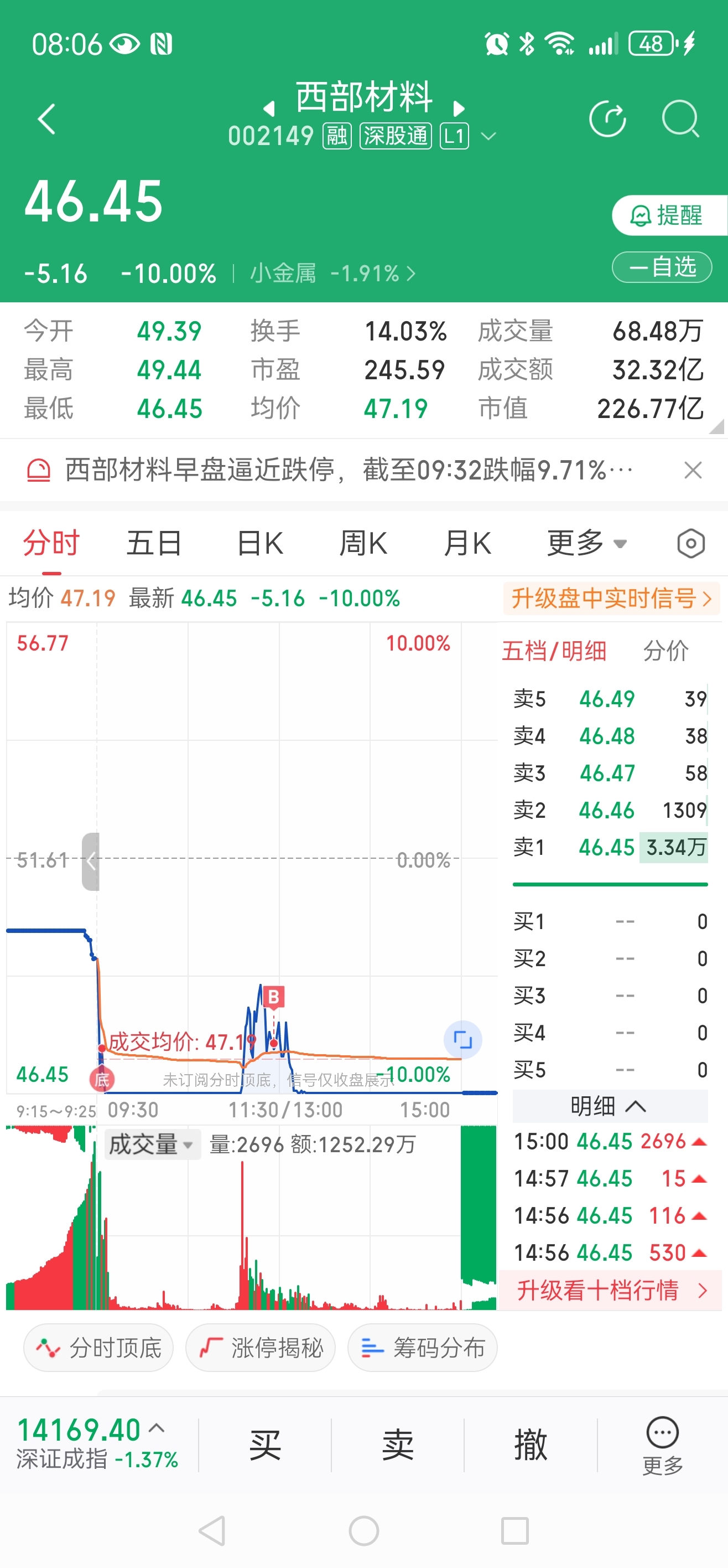 $西部材料(SZ002149)$ 主动买套了