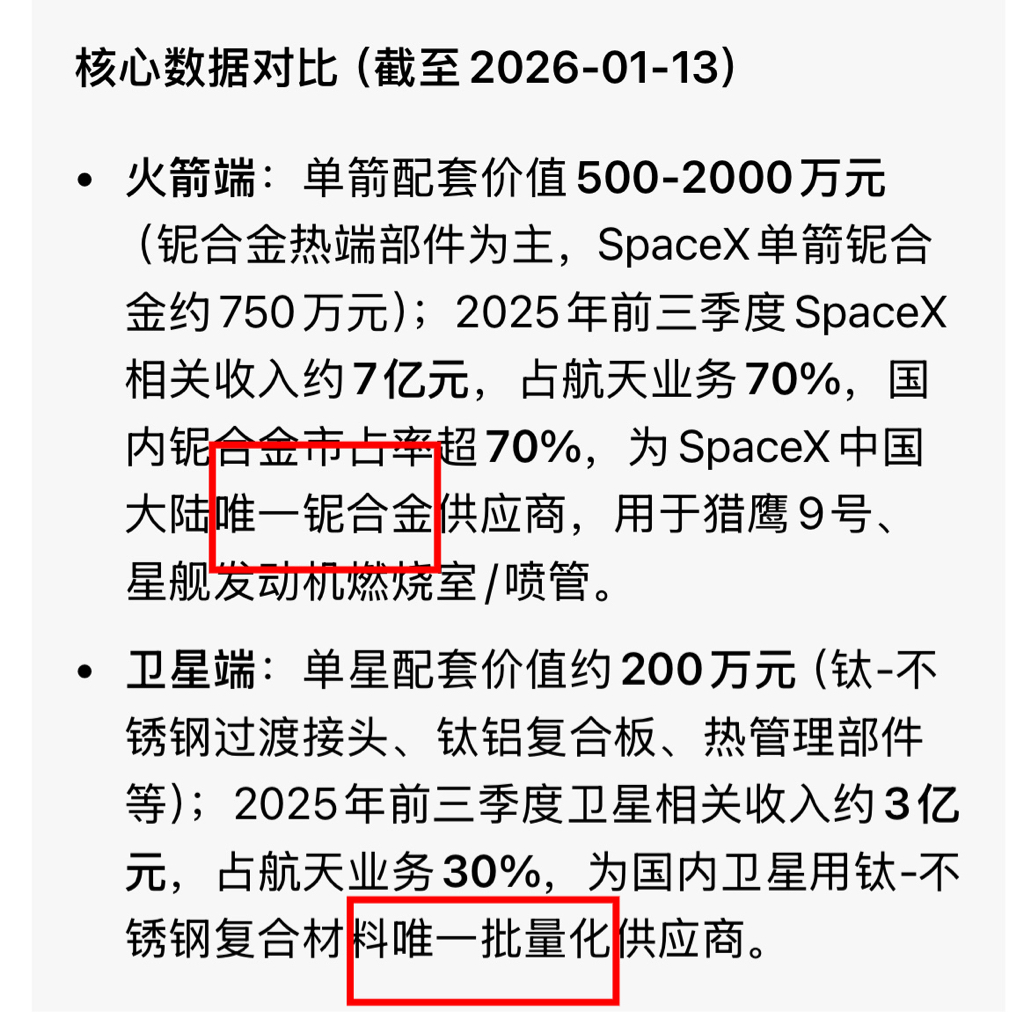 一一两个“唯一”不值100元???几乎是垄断性质……航天业务占比70%,怎么说…