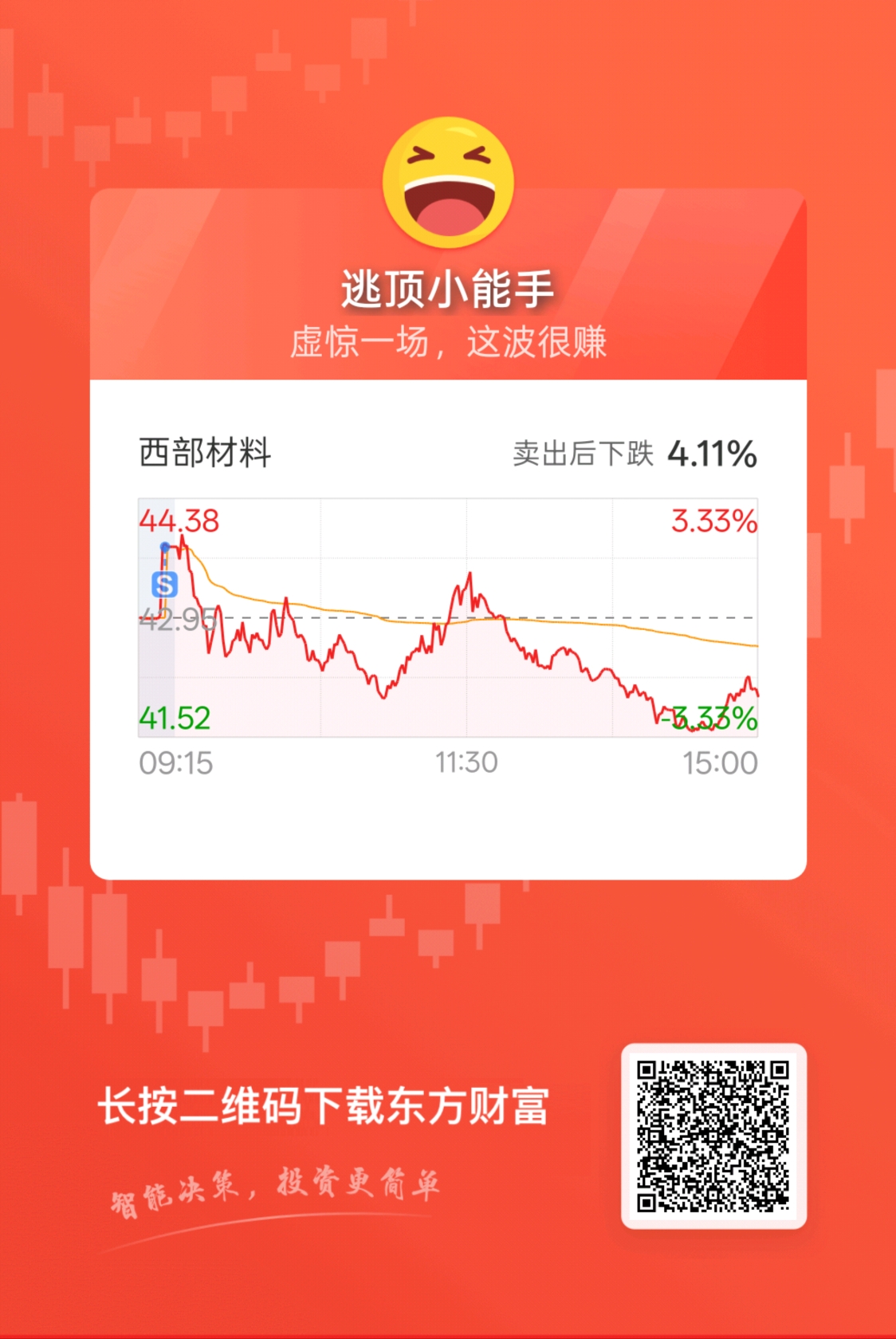 $西部材料(SZ002149)$ 高点清仓,获利了结。再看机会,封低进入。