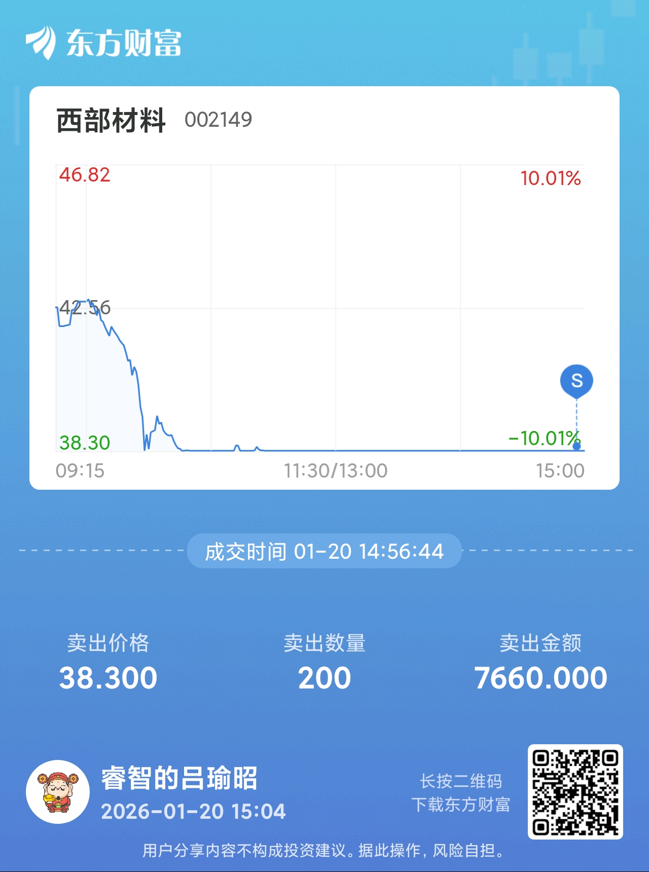 $西部材料(SZ002149)$ 感谢神秘大哥 最后十秒全清仓了10手 再也不见