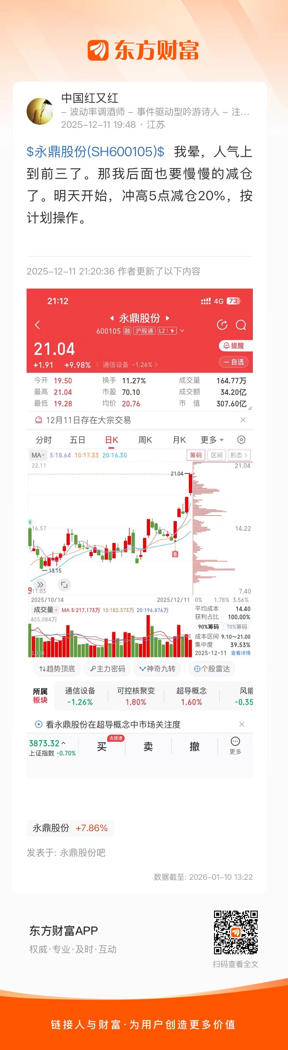 一是股价最近期有过涨停。但我们不是说涨停就冲进去,而是开始观察他。举个例子:$永鼎股份(SH600105)$