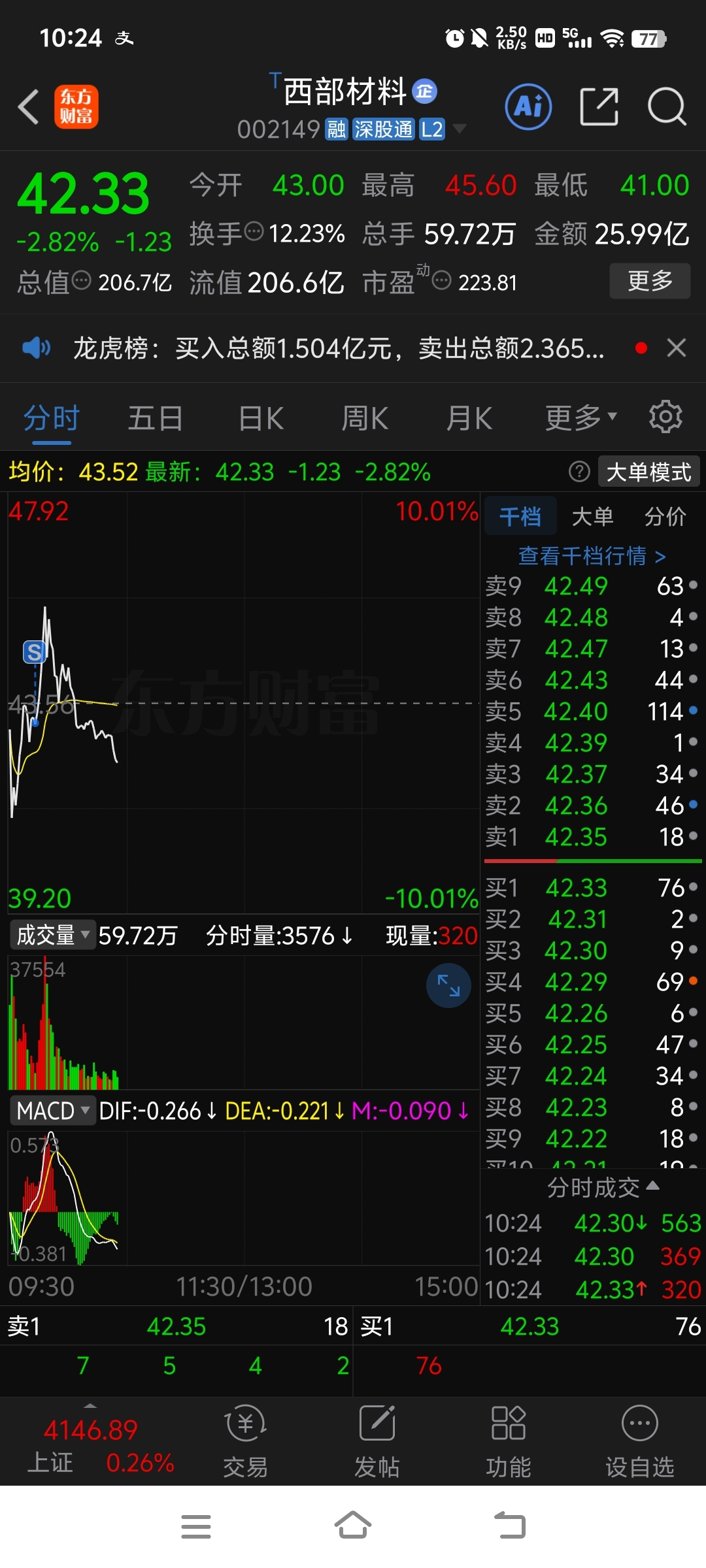 $西部材料(SZ002149)$ 跑了,后面继续观察
