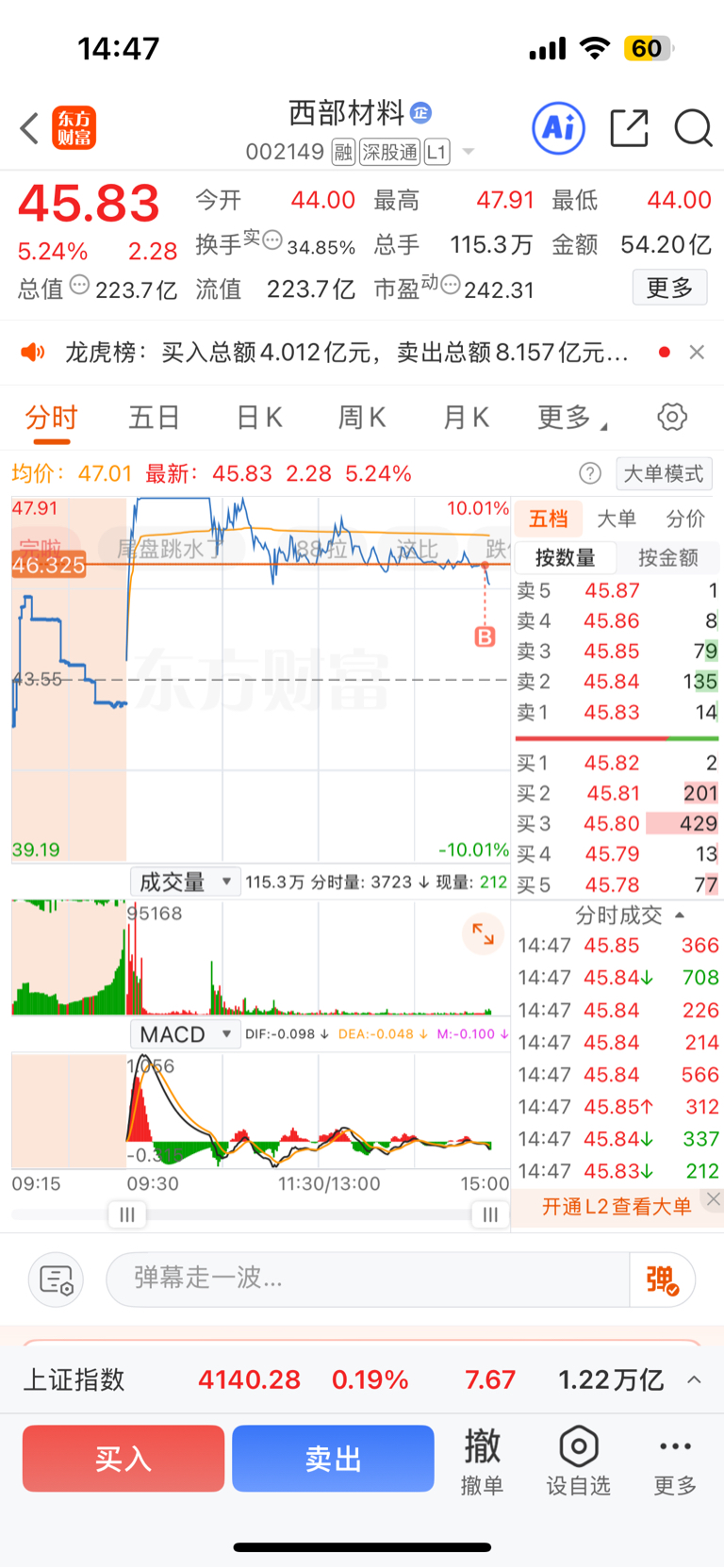 $西部材料(SZ002149)$ 对不起大家,我一进来就买崩塌了尾盘断魂刀