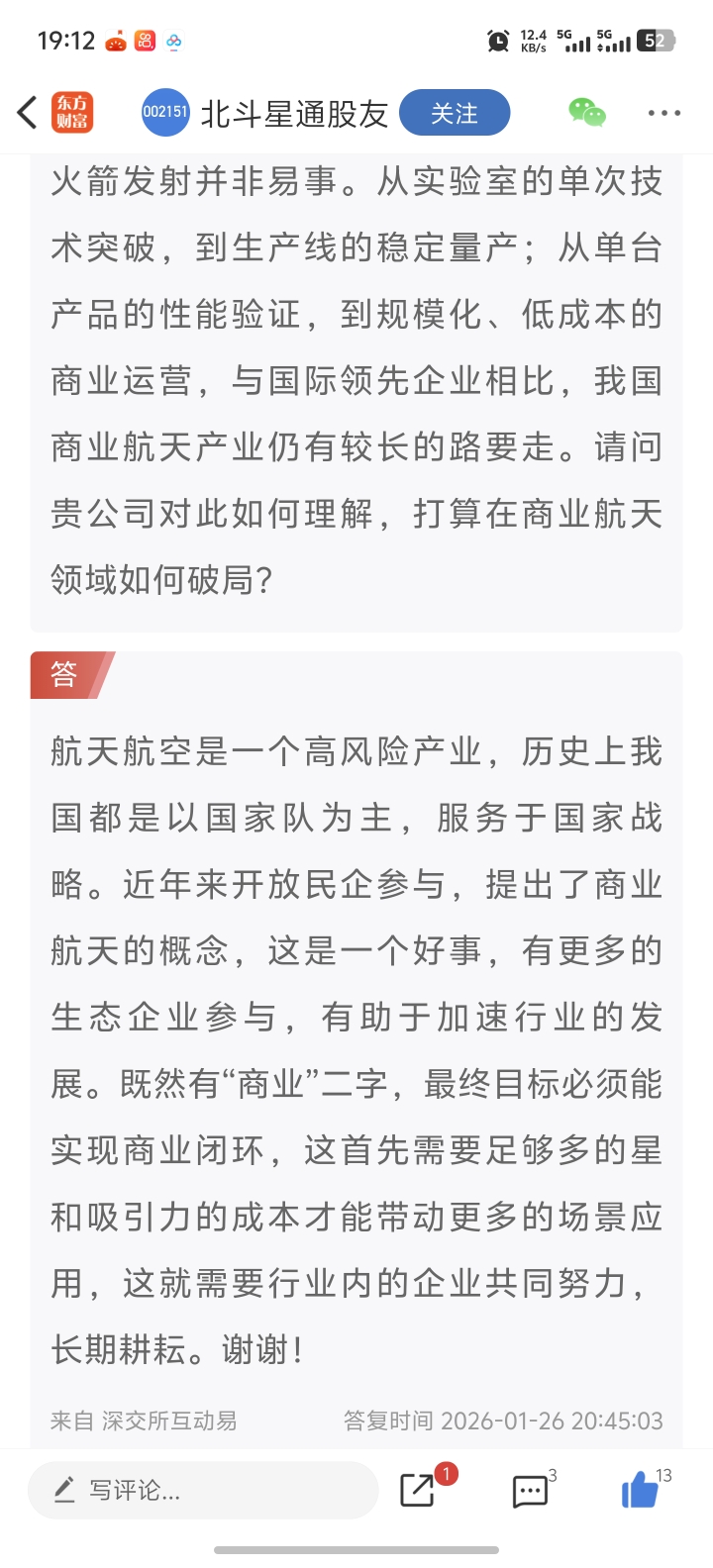北斗星通的董秘嘞的实话虽然不好听,但是逻辑没问题。