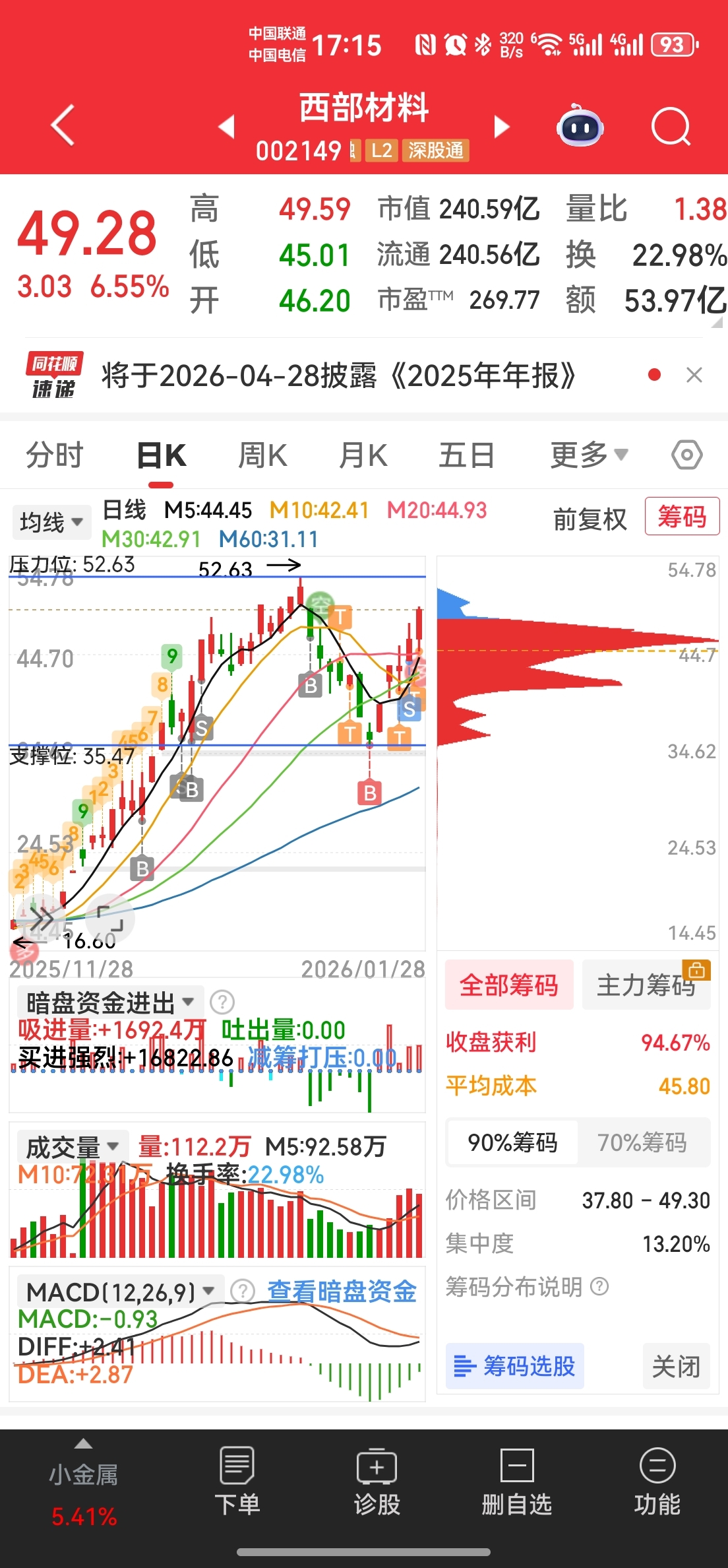 $西部材料(SZ002149)$ 明天准备把最后一点筹码卖给有缘人,这么涨的我都害怕了