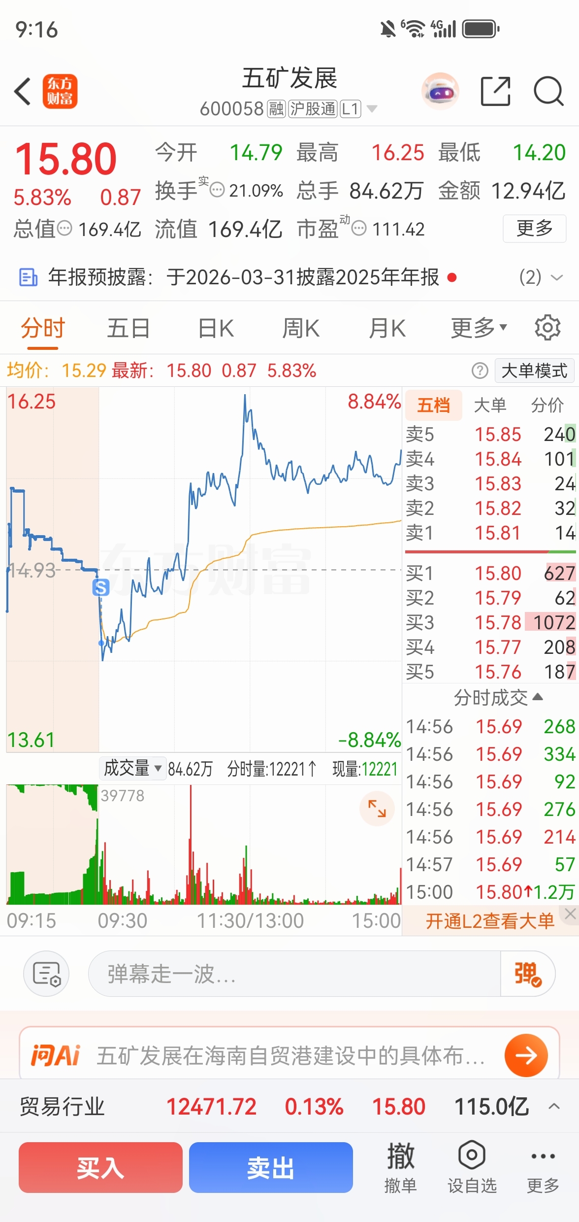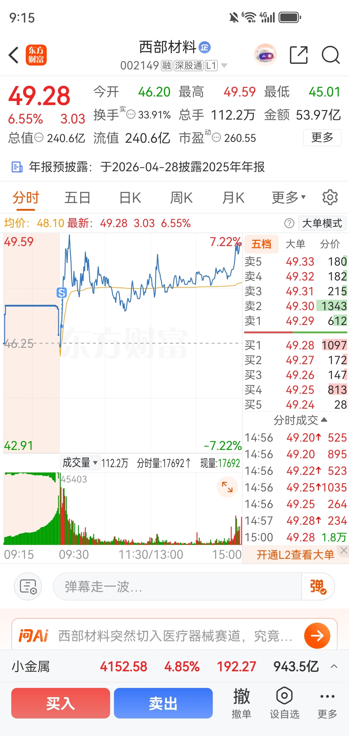 天塌了,今天还有谁比我更惨的了开盘卖了五矿和西部,补仓国民技术,涨不动的时候卖了