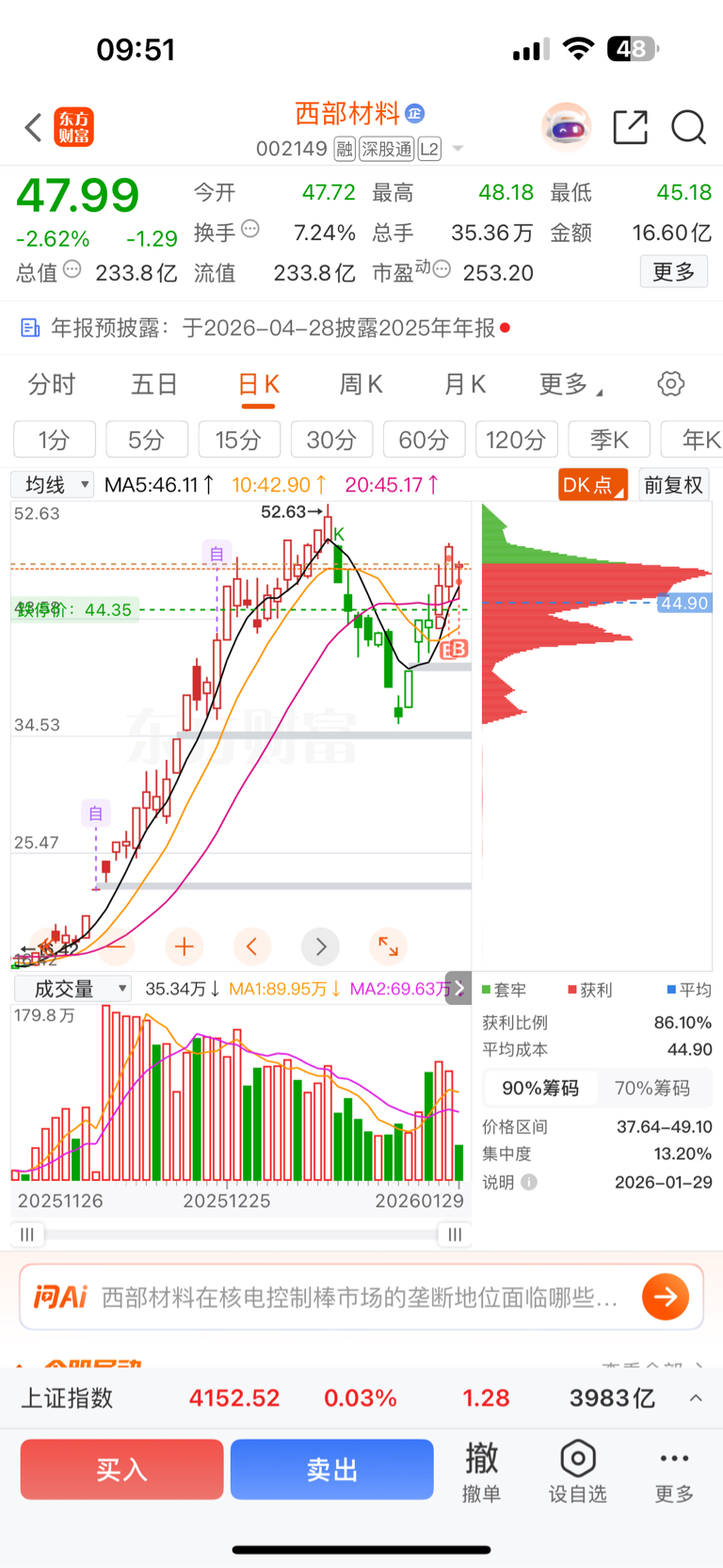 $西部材料(SZ002149)$ 航天正在回暖 ,这走势还怕啥啊?加仓干 今天低吸爽了