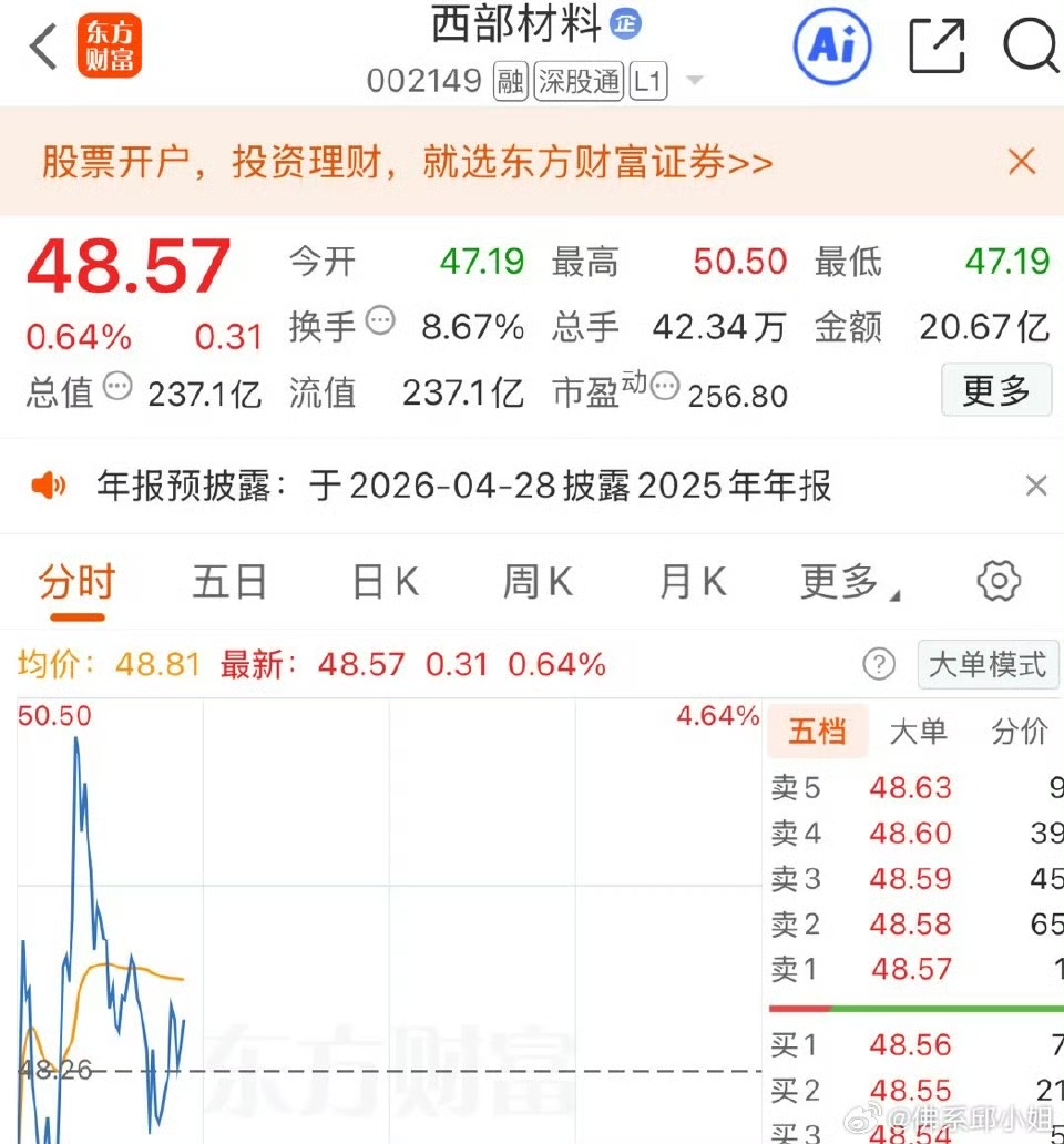 $西部材料(SZ002149)$ $西部材料 sz002149$ 今天早上大盘下行,西部倍拖累下来,见红了的,今天盘中要是给机会,还得考虑t,看到的点赞评论168