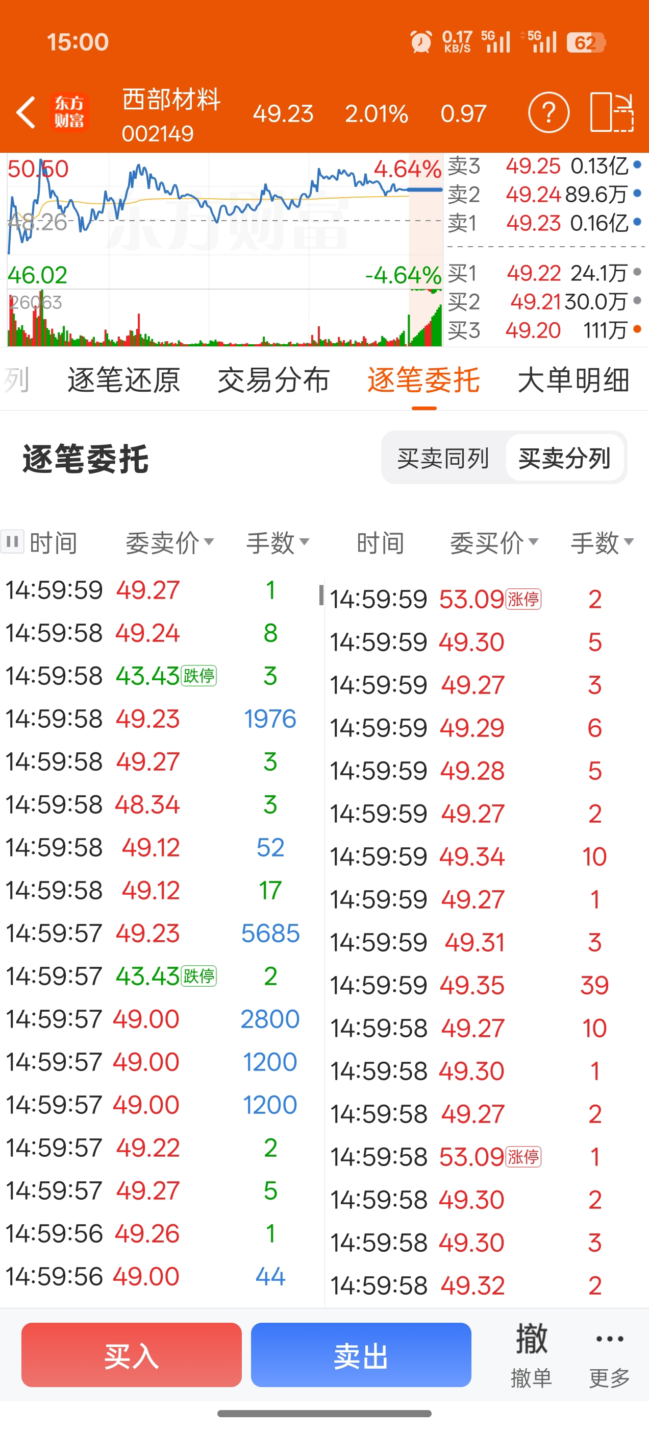 $西部材料(SZ002149)$ 谁的手笔尾盘10000手卖