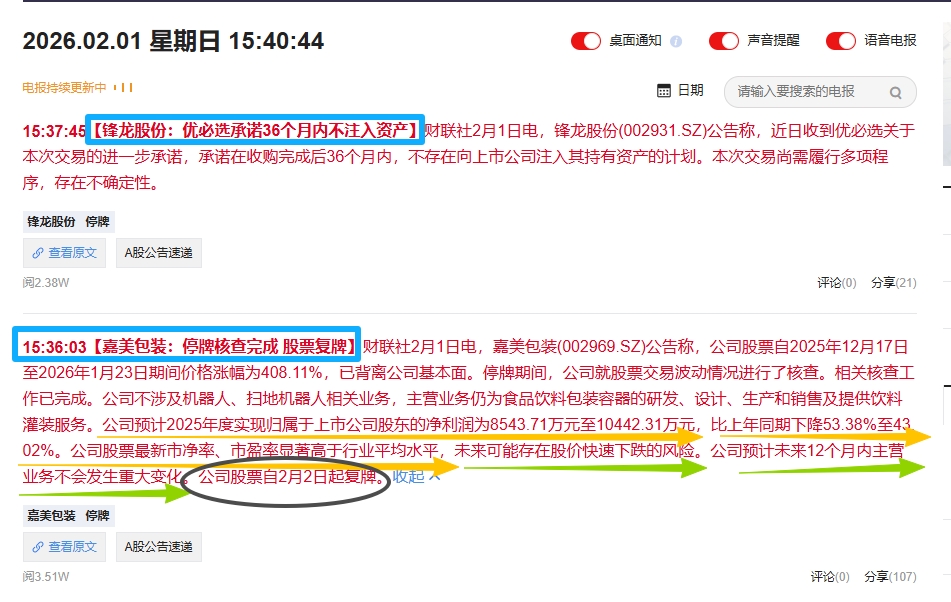 明日看点“两妖”高度风向标如期复牌002931锋龙股份002969嘉美包装...