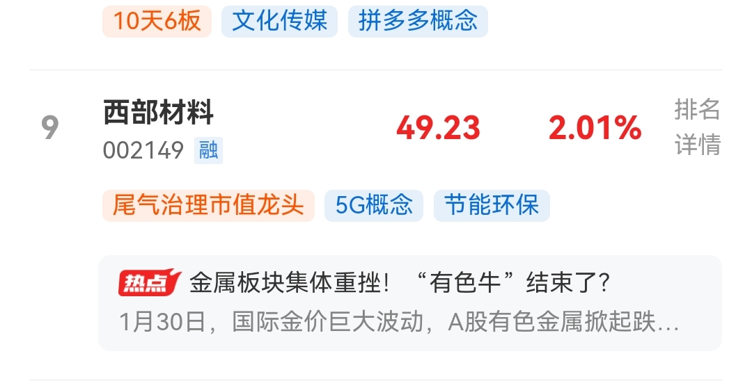 $西部材料(SZ002149)$ 原来热点是跟金属,不是跟商业航天,别的票热点都是跟商业航天。