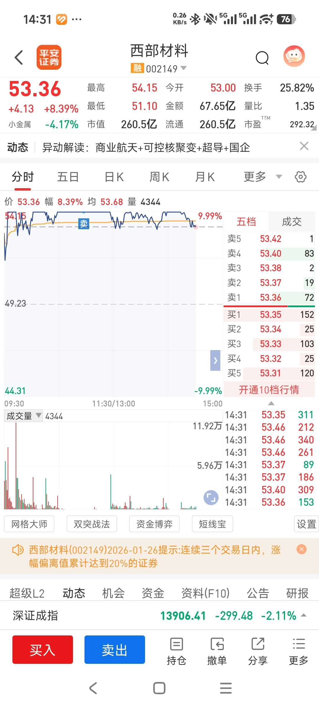 $西部材料(SZ002149)$ 我先撤了,留下的发财
