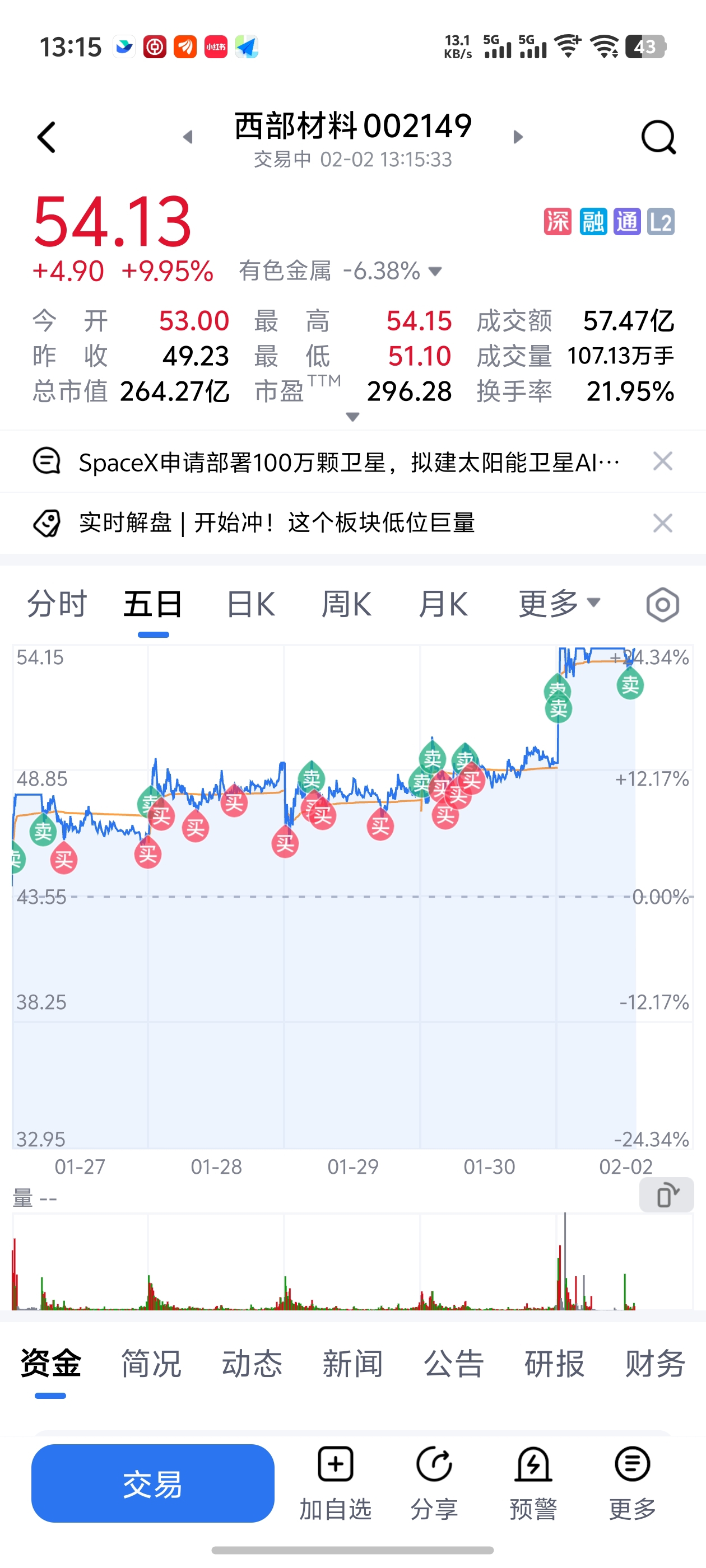 $西部材料(SZ002149)$ 全出了 明天低开再说 你确实是个人才