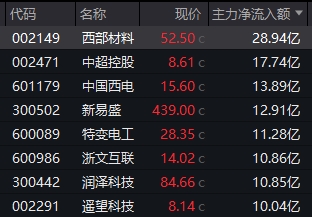 $西部材料(SZ002149)$ 资金流入最多,明天反包预期