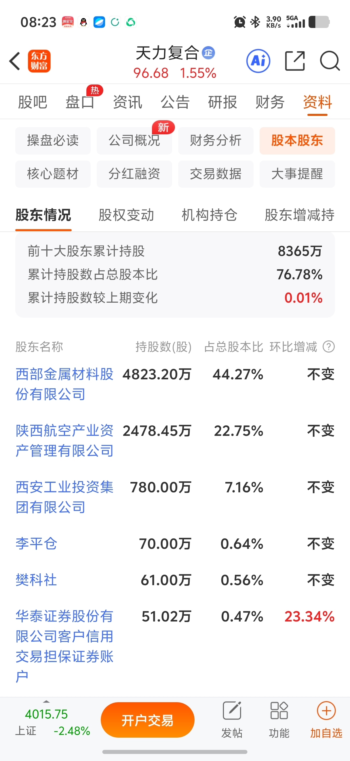 $西部材料(SZ002149)$ 你买了西部材料,相当于买了两家spacex概念股,天力复合的大股东也是西部材料,持股45%