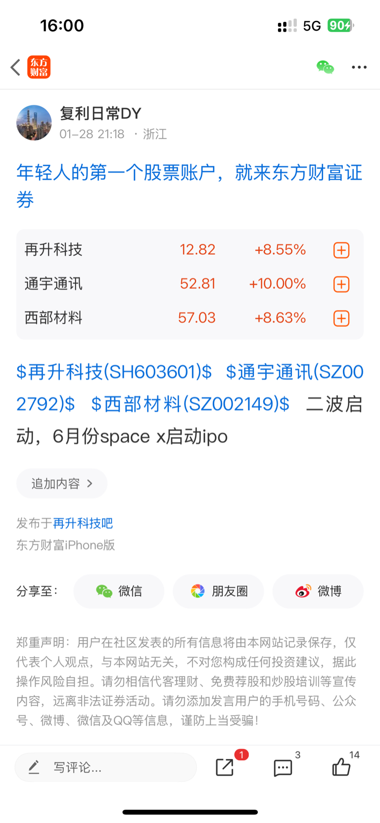 温馨提示: 1.根据《证券法》规定,禁止编造、传播虚假信息或者误导性信息,扰乱证券市场;2.用户在本社区发表的所有资料、言论等仅代表个人观点,与本网站立场无关,不对您构成任何投资建议。用户应基于自己的独立判断,自行决定证券投资并承担相应风险。《东方财富社区管理规定》