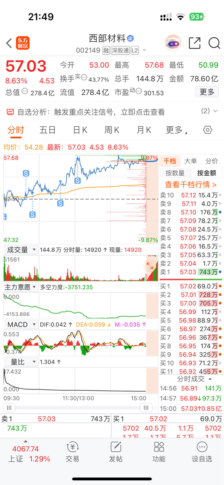 $西部材料(SZ002149)$ 我踏空了啊 我心痛啊