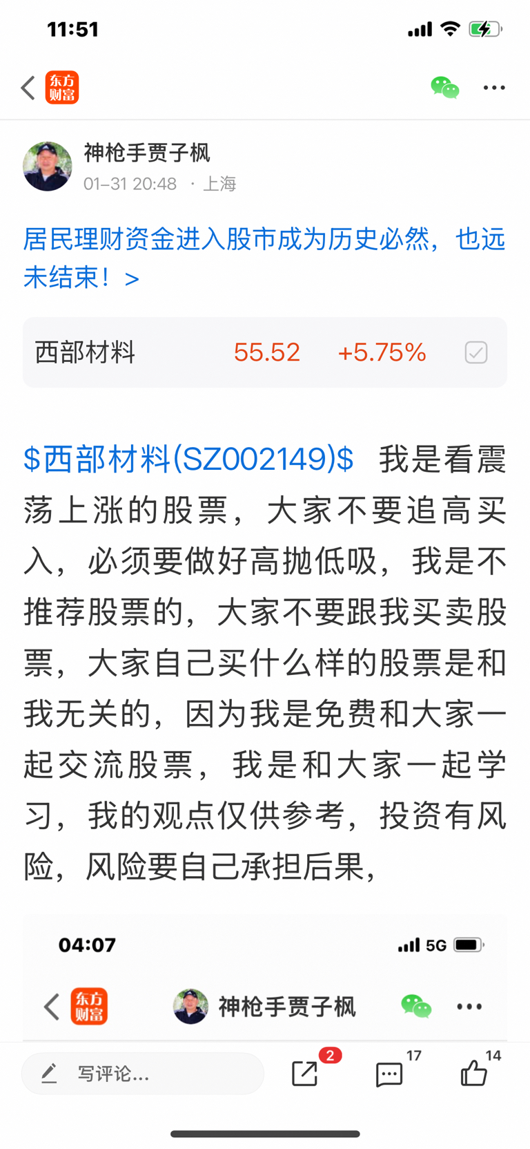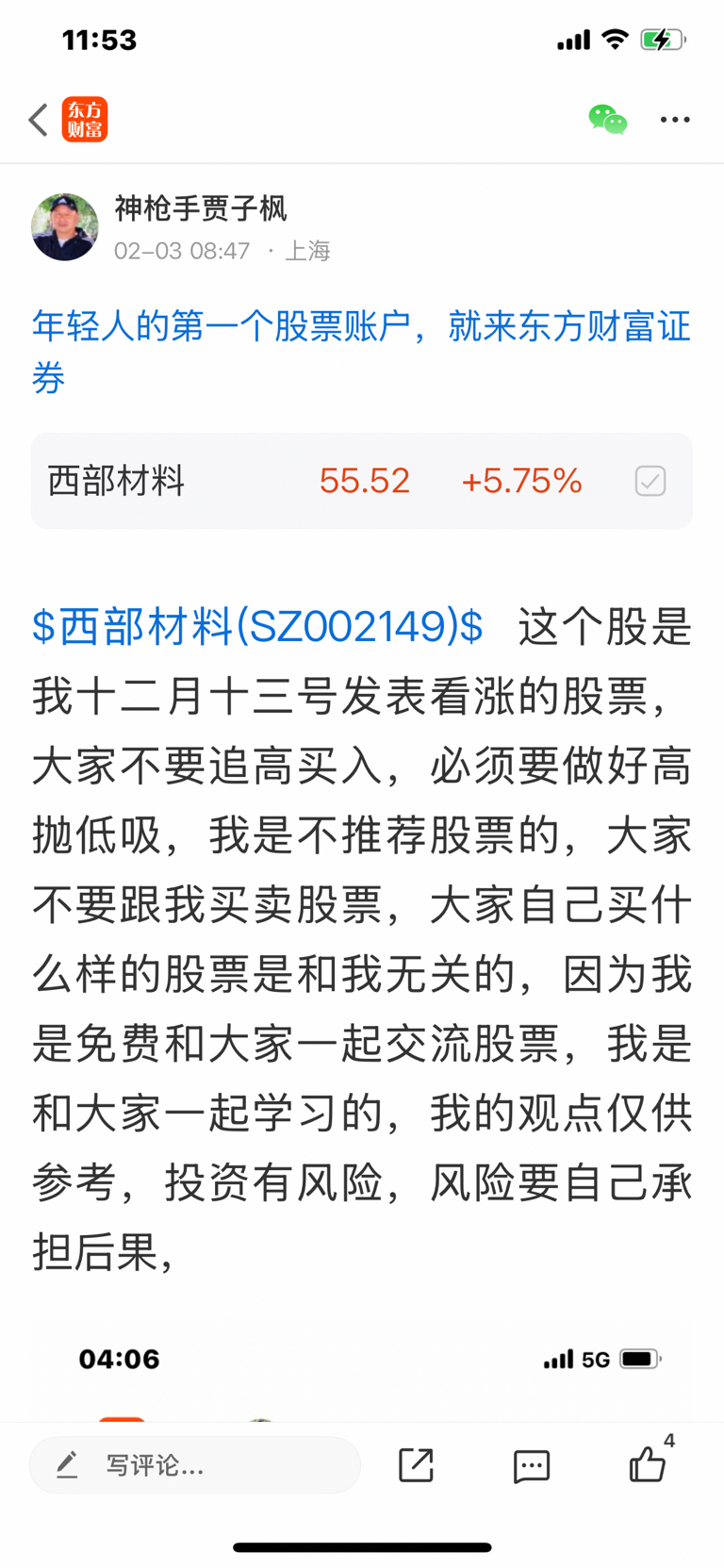 $西部材料(SZ002149)$ 这个股我是十二月十三号发表看涨的股票,大家不要追高买入,必须要做好高抛低吸,我是不推荐股票的,大家不要跟我买卖股票,大家自己买什么样的股票是和我无关的,因为我是免费和大家一起交流股票,我在和大家一起学习的,我的观点仅供参考,投资有风险,风险要自己承担后果,