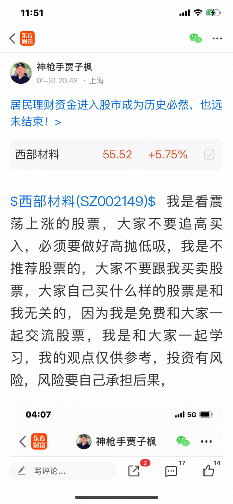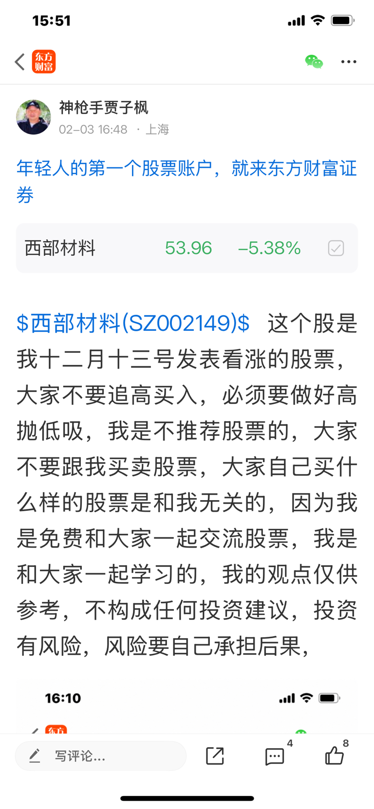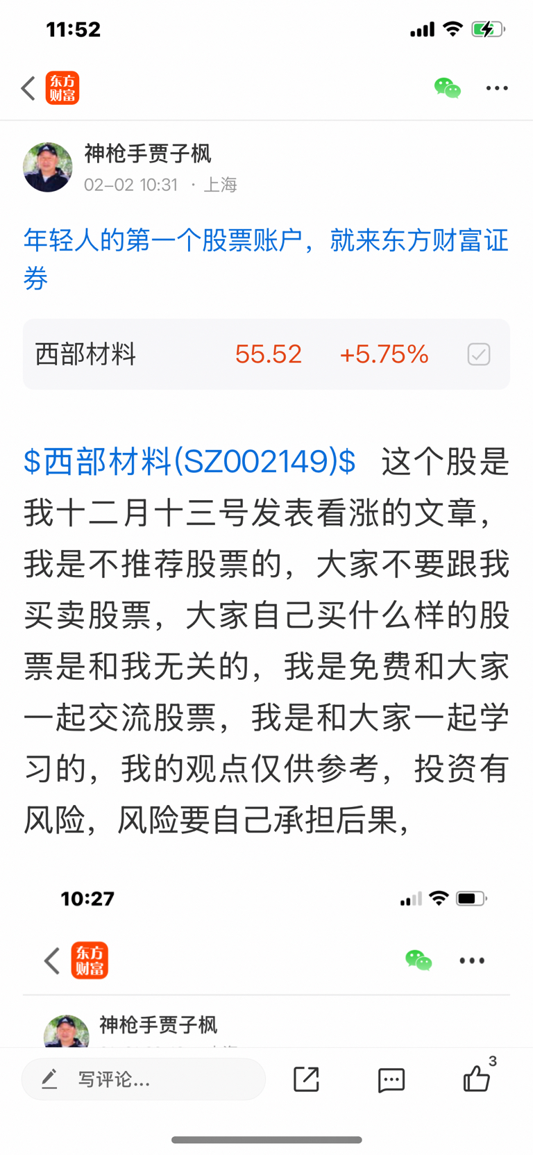 $西部材料(SZ002149)$ 这个股我是十二月十三号发表看涨的股票,大家不要追高买入,必须要做好高抛低吸,我是不推荐股票,大家不要跟我买卖股票,大家自己买什么样的股票是和我无关的,因为我是免费和大家一起交流股票,我是和大家一起学习的,我的观点仅供参考,投资有风险,风险要自己承担后果,