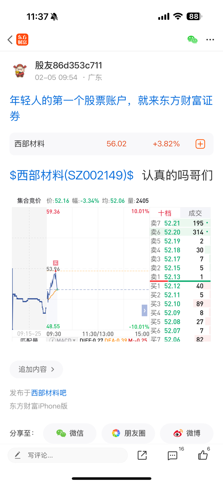 $西部材料(SZ002149)$ 早上吓死我了真的