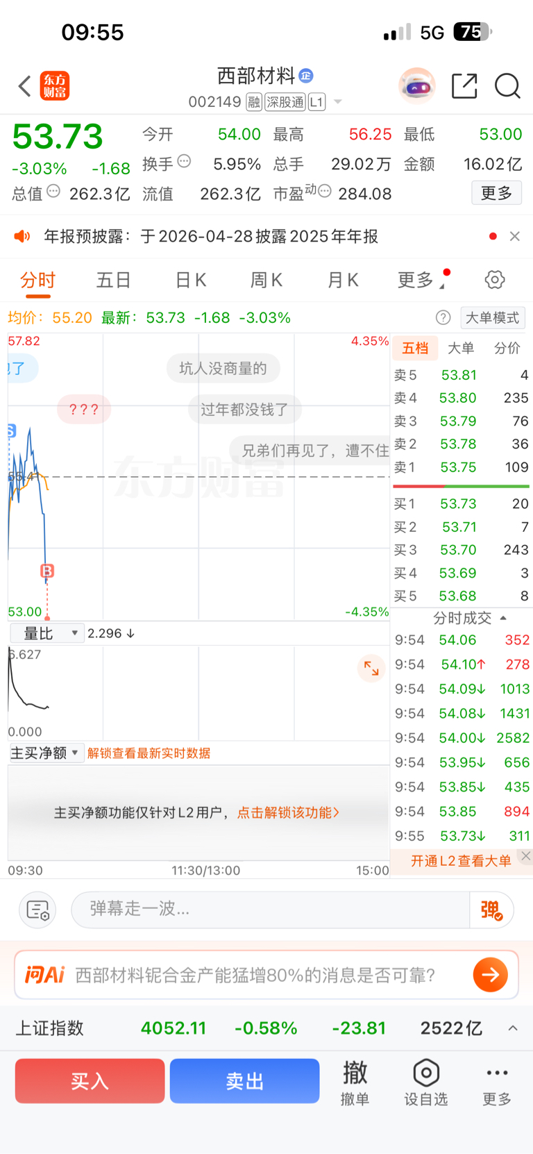 $西部材料(SZ002149)$ 啊,我输错了数字,买了……