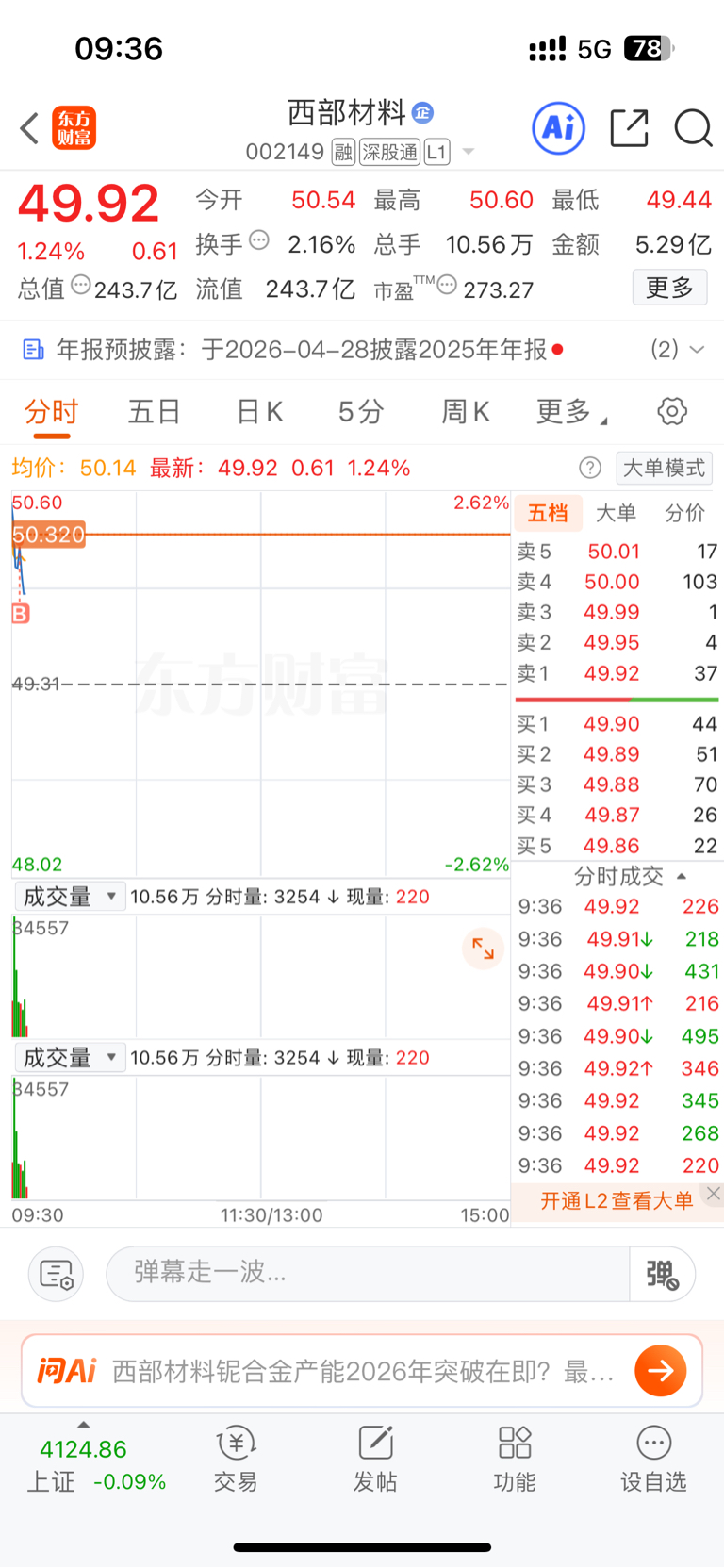 $西部材料(SZ002149)$ 买崩了