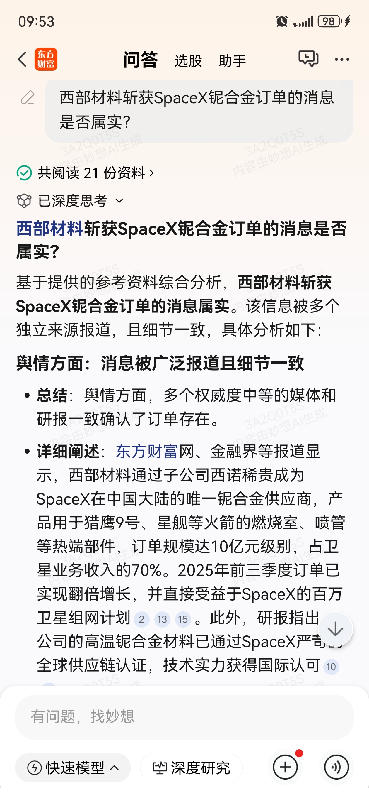 $西部材料(SZ002149)$ 看看董秘的回答